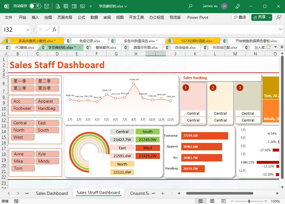 如果你打开的文件很多很多,工作簿文件标签,也可以很清晰的进行显示,左侧顶部无论哪个角落都可以放置这些标签: