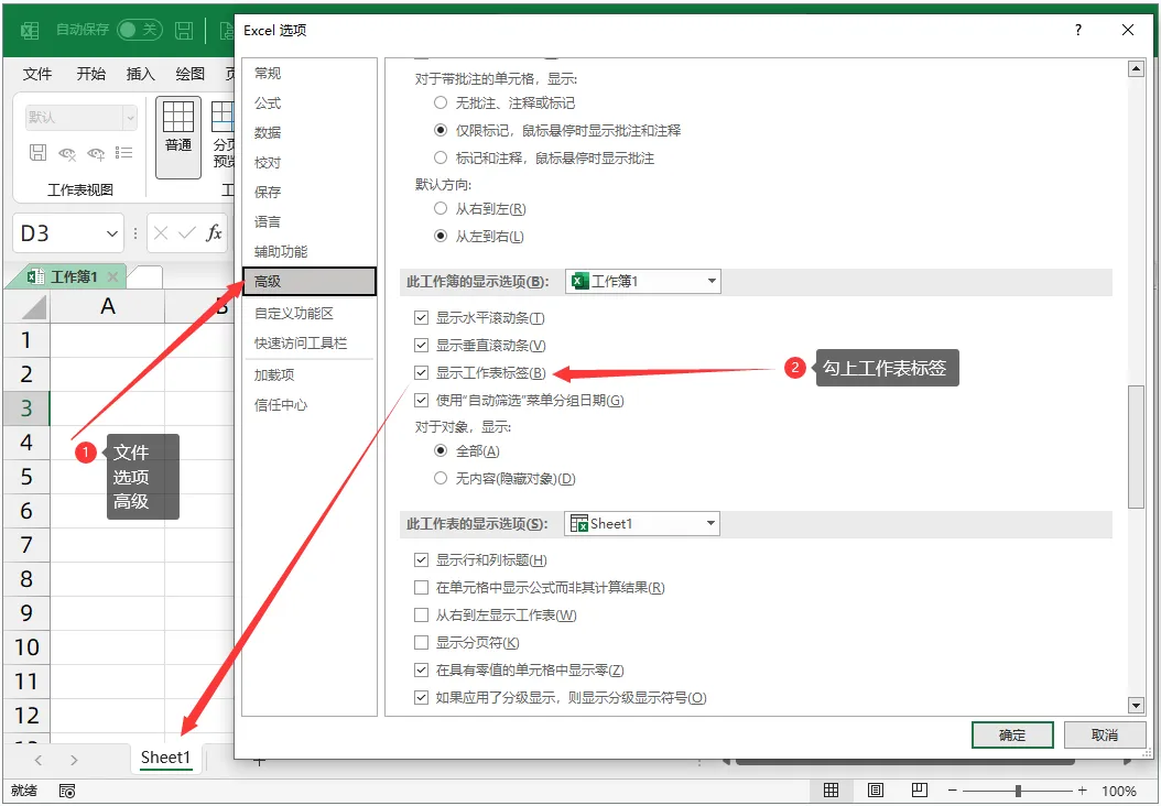 工作表标签,也就是下方的sheet1,显示操作如下: