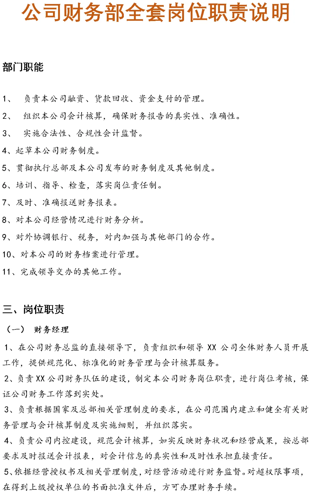 本资料为《公司财务部全套岗位职责说明(Word模板)》,欢迎加入会员领取!