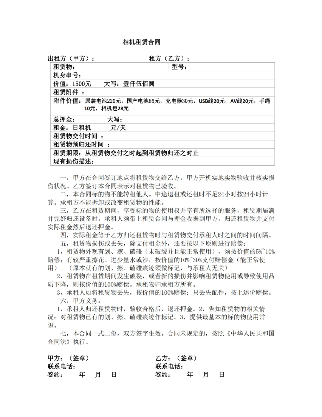 相机租赁合同模板,WORD文档电子版,可免费下载打印
