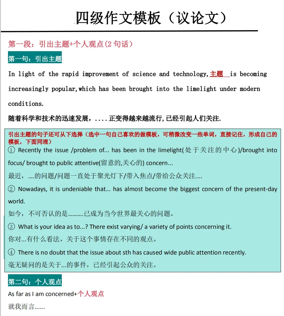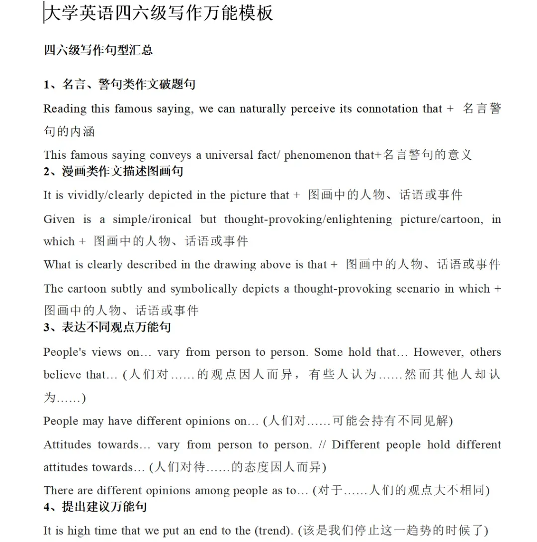 大学英语四六级写作万能模板