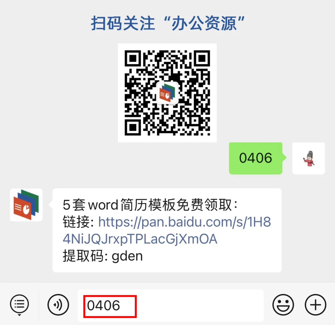 领取方式:扫码关注「办公资源」微信公众号,对话框回复关键词:0406,即可免费领取。