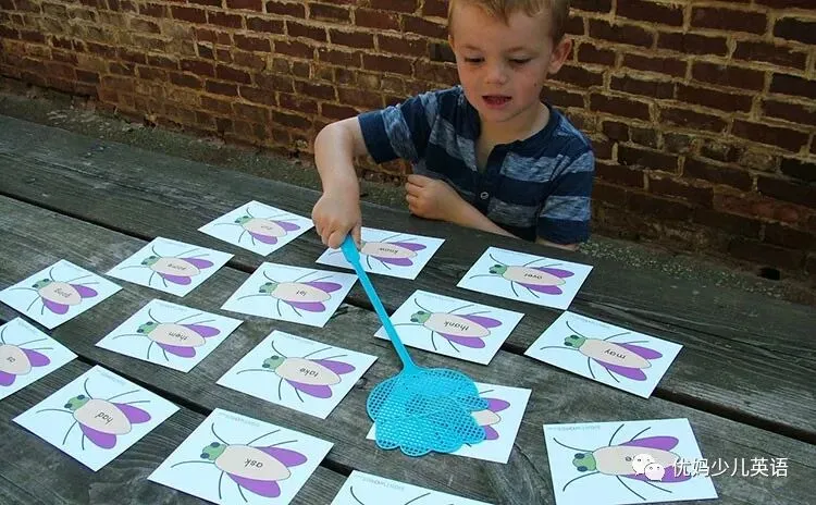 这个游戏需要苍蝇闪卡和一个苍蝇拍,老师或者家长大声说出某个Sight Word,孩子拿苍蝇拍去拍,用这种有趣的形式来让孩子记忆单词。