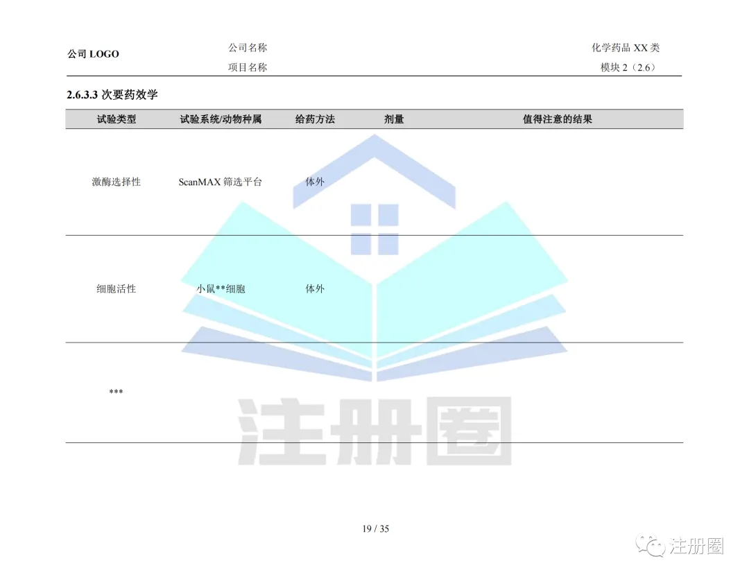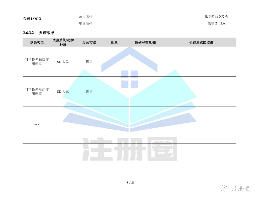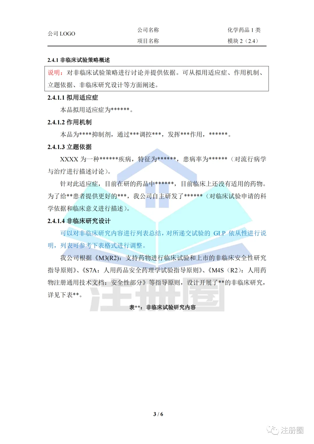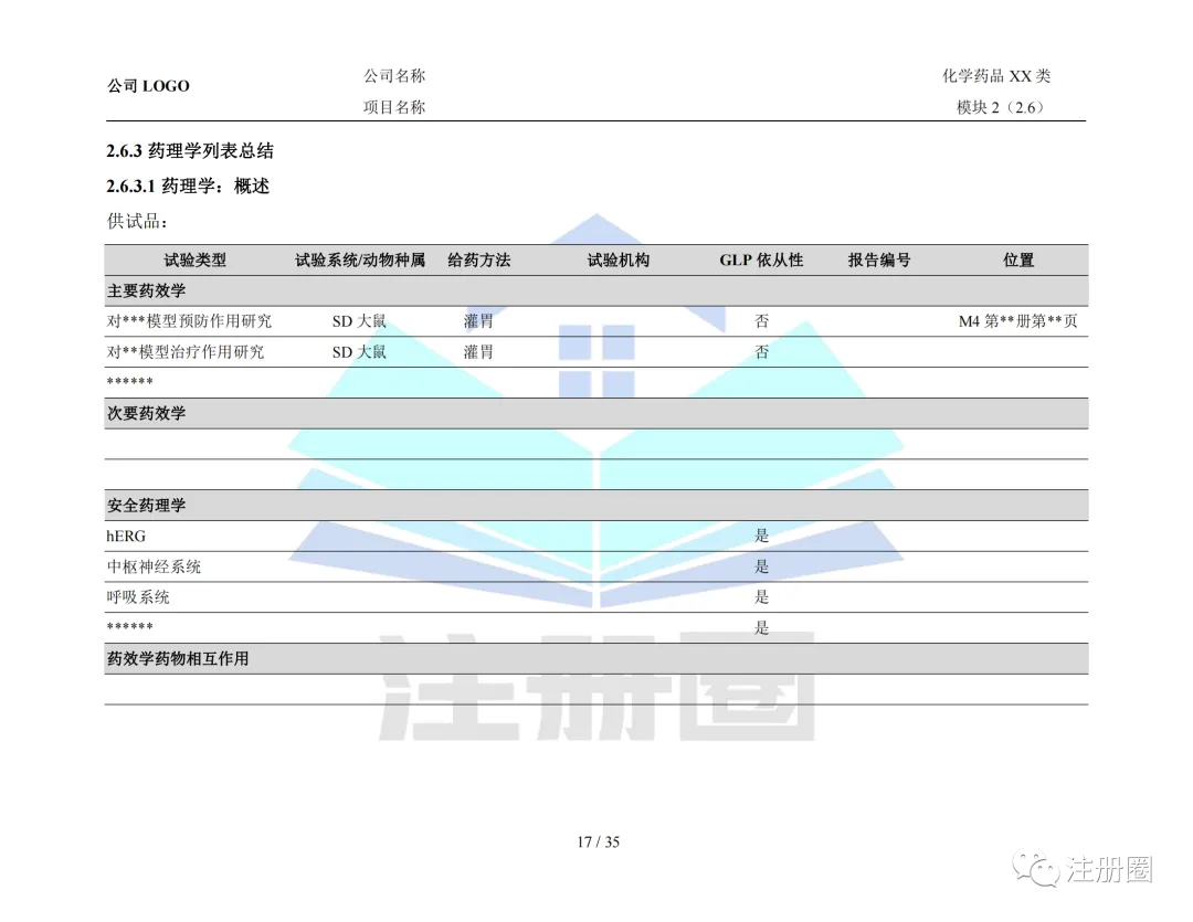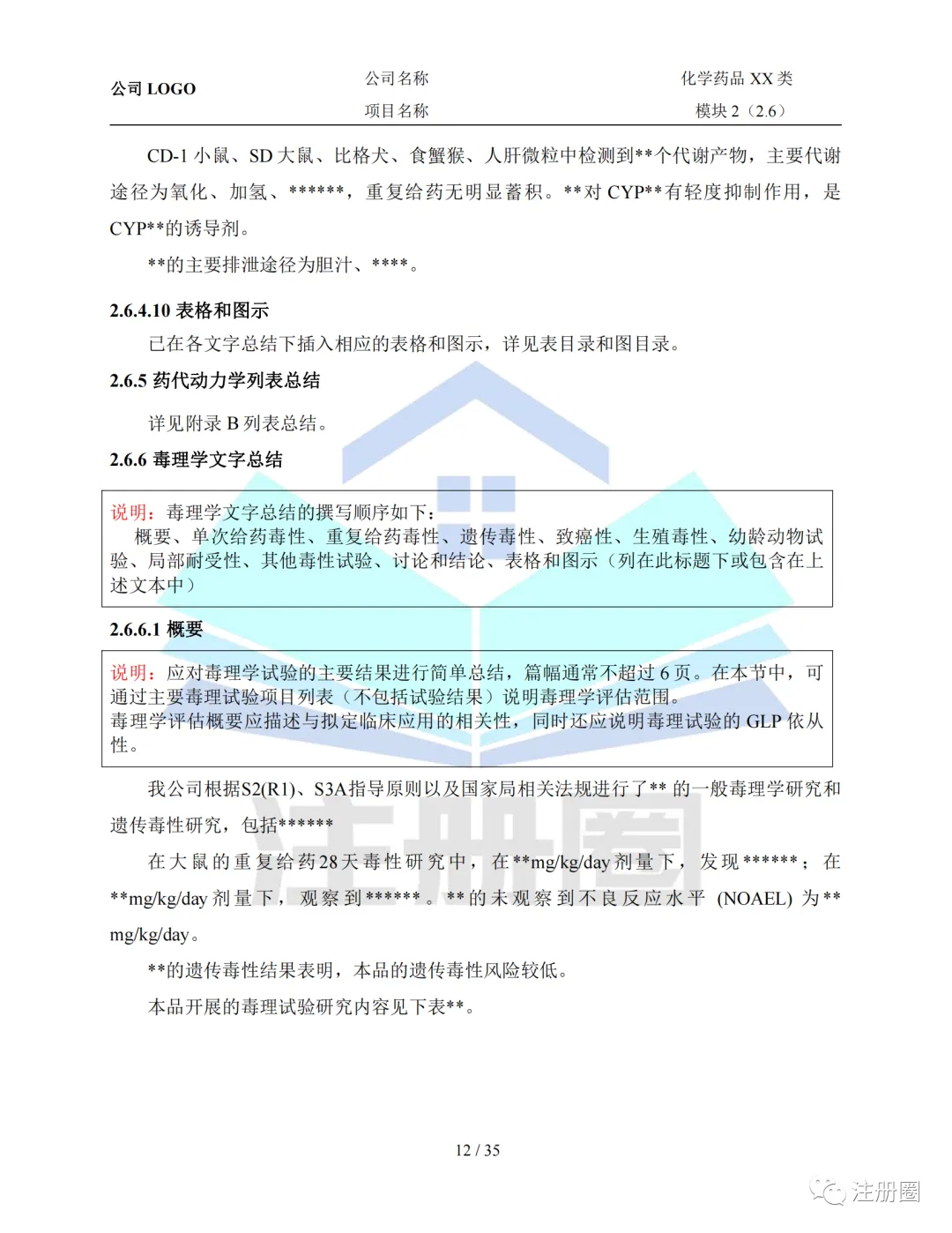2022年2月,注册圈整理发布了化药4类上市申请模块2的模板。对于创新药IND申请而言,非临床综述和总结部分有很大的差异。非临床综述是对药物药理学、药代动力学、毒理学研究的综合并且重要的评价。非临床总结则是采用可接受的格式撰写非临床药理学、药代动力学和毒理学文字总结和列表总结。通过非临床综述和总结,应能得出支持临床拟用产品安全性的结论,故这部分内容十分重要。