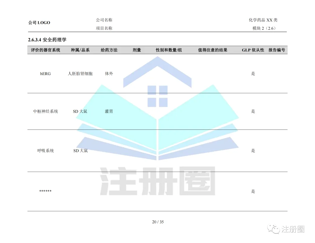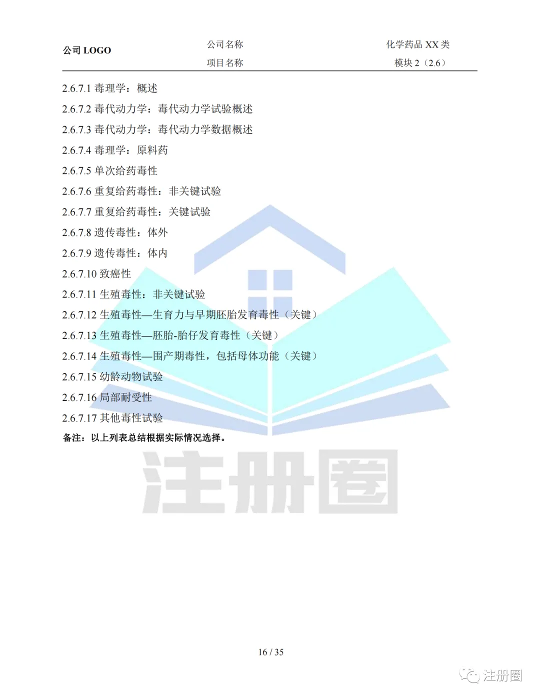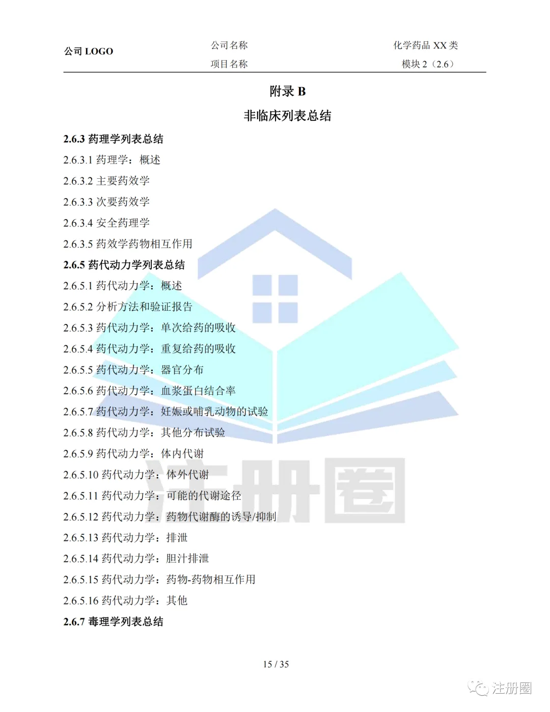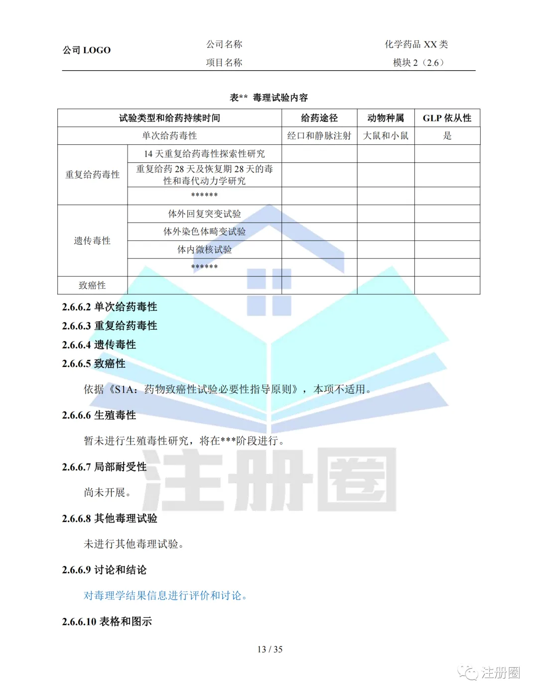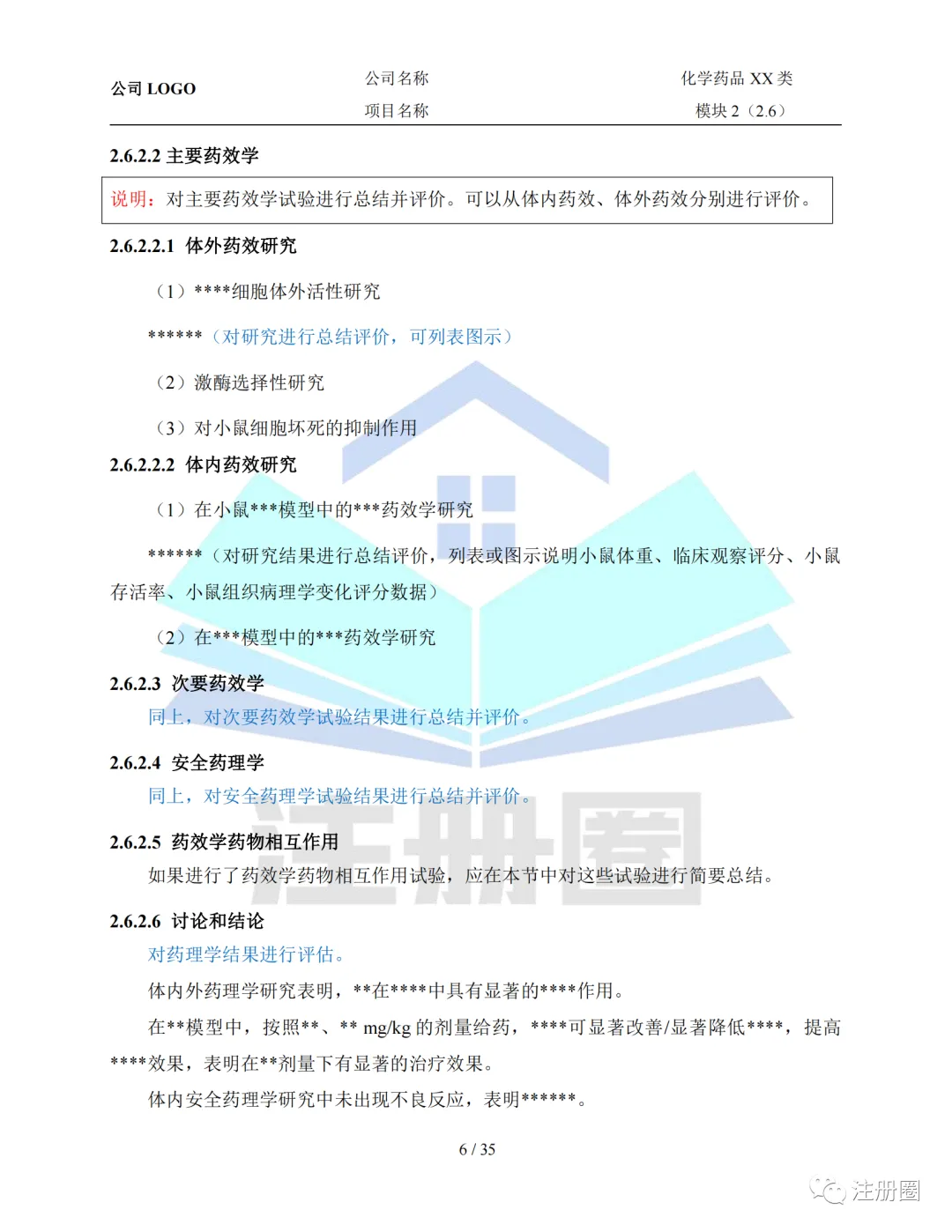 2022年2月,注册圈整理发布了化药4类上市申请模块2的模板。对于创新药IND申请而言,非临床综述和总结部分有很大的差异。非临床综述是对药物药理学、药代动力学、毒理学研究的综合并且重要的评价。非临床总结则是采用可接受的格式撰写非临床药理学、药代动力学和毒理学文字总结和列表总结。通过非临床综述和总结,应能得出支持临床拟用产品安全性的结论,故这部分内容十分重要。