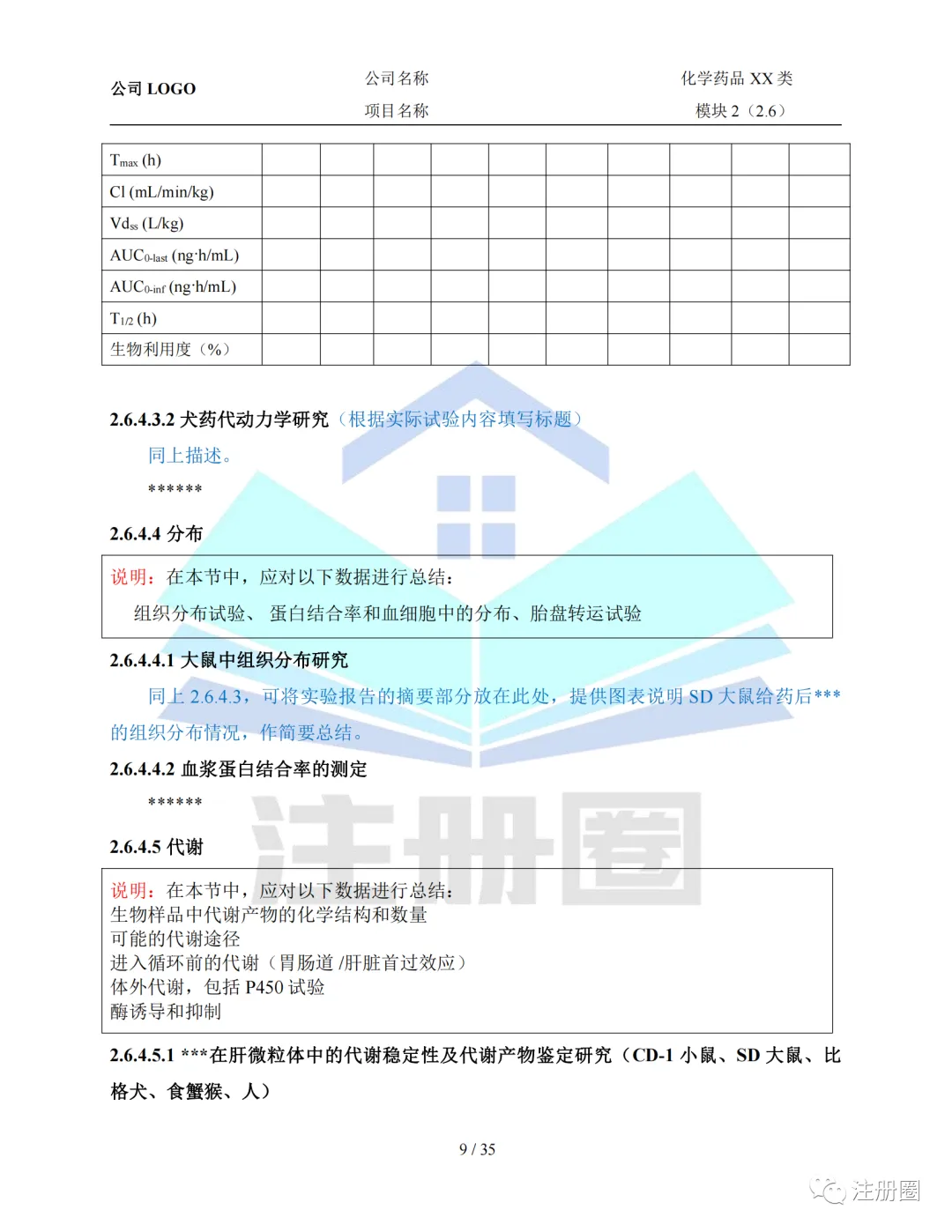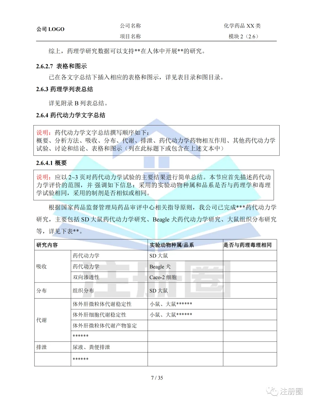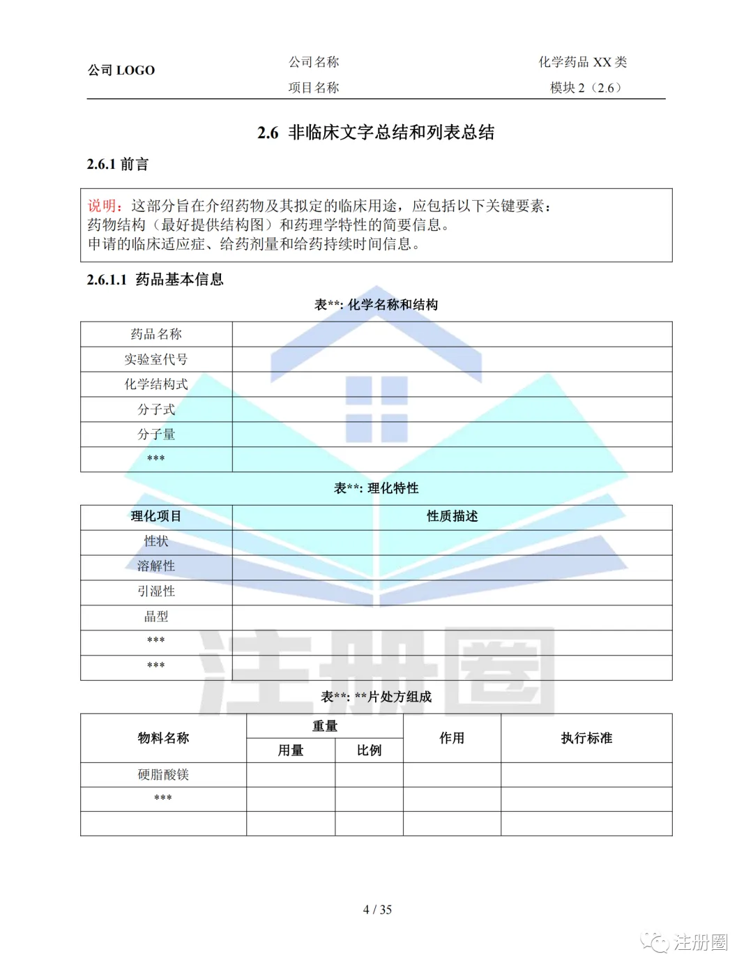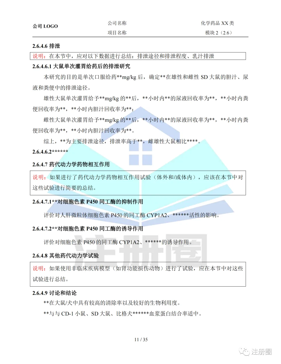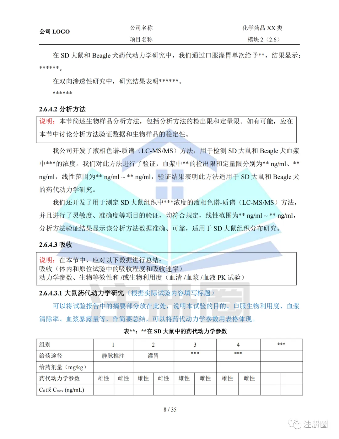 2022年2月,注册圈整理发布了化药4类上市申请模块2的模板。对于创新药IND申请而言,非临床综述和总结部分有很大的差异。非临床综述是对药物药理学、药代动力学、毒理学研究的综合并且重要的评价。非临床总结则是采用可接受的格式撰写非临床药理学、药代动力学和毒理学文字总结和列表总结。通过非临床综述和总结,应能得出支持临床拟用产品安全性的结论,故这部分内容十分重要。