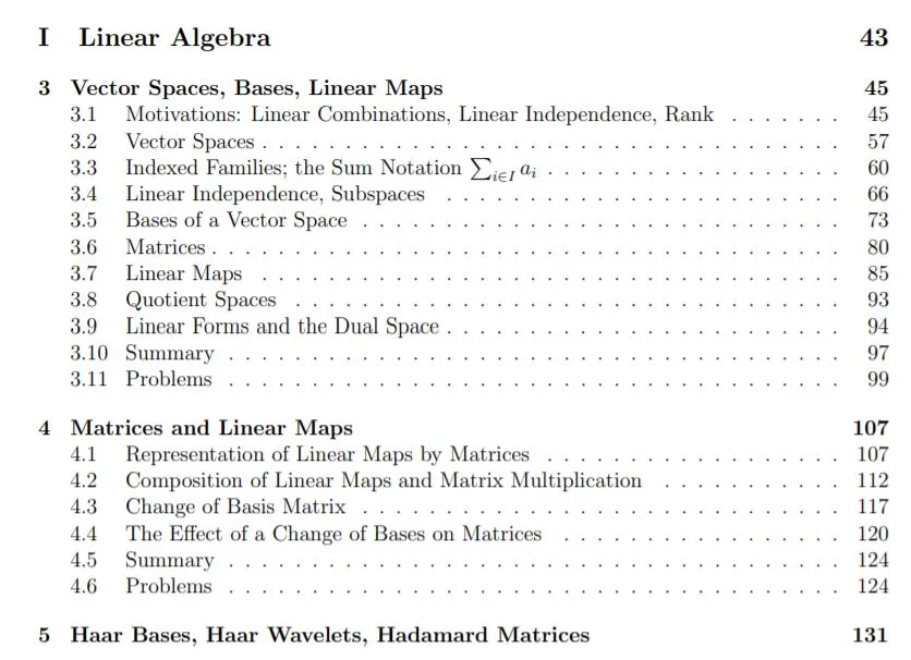 第二部分:线性与射影几何,共3章,170余页。
