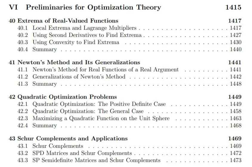 要搞机器学习离不开数学,本文分享一本来自宾夕法尼亚大学计算机系教授Jean Gallier主编的面向机器学习的“数学全书”,内容涵盖线性代数、概率统计、拓扑学、微积分、最优化理论等面向ML的数学知识,共计1900余页,快来下载收藏吧!来与 AI 大咖一起参与讨论吧~
