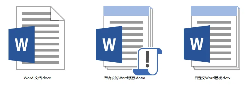 2号:图标有一个感叹号,是带有宏的Word模板,后缀名为“.dotm”。