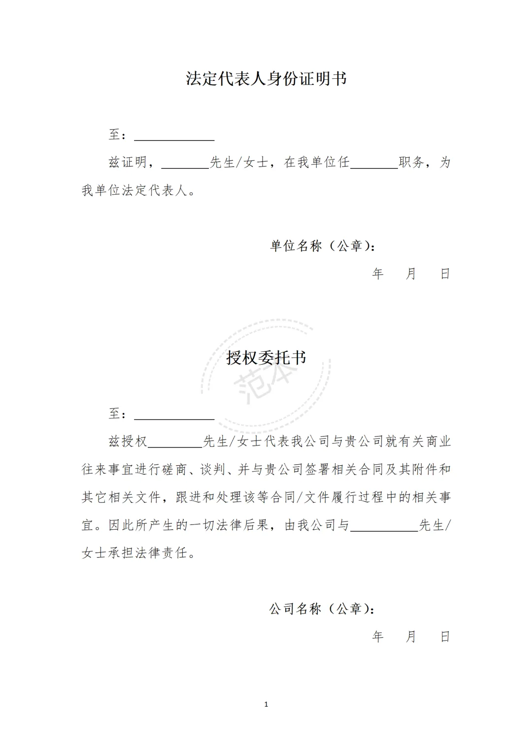 兹证明,先生/女士,在我单位任职务,为我单位法定代表人。同时授权先生/女士代我公司签署与贵方的如下合同。