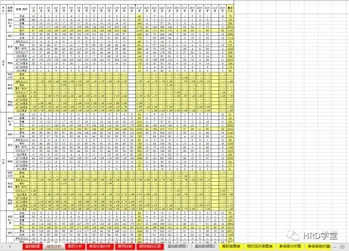 36、人力资源汇总表(基础数据、结构分析、离职分析、保险、费用、绩效等)
