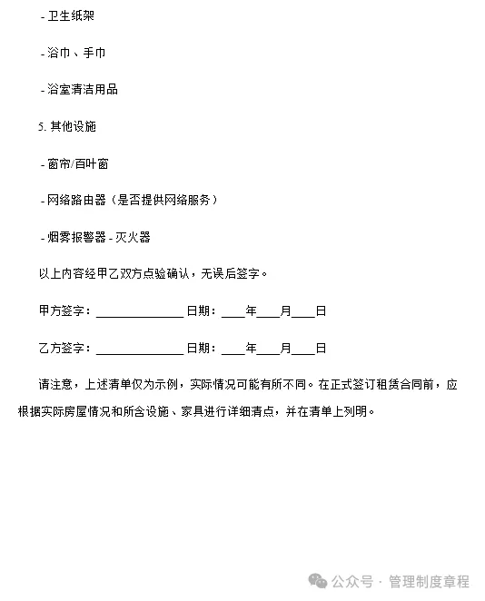 5. 房屋配套设施及家具:详见附件《房屋设施及家具清单》