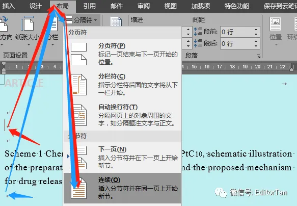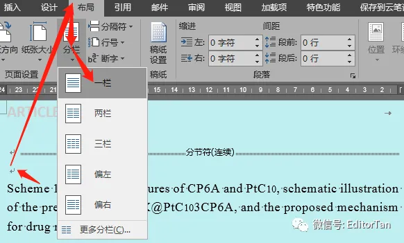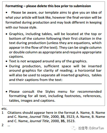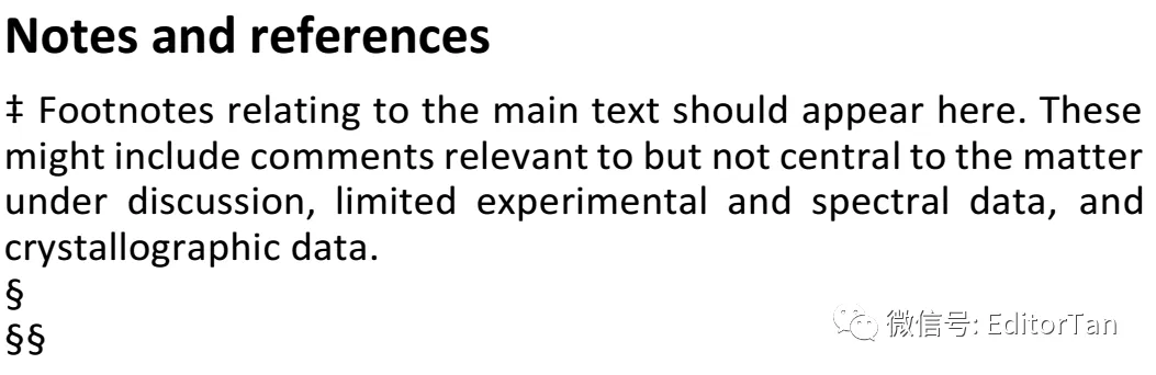 教程 | RSC投稿Word模板编排,你知道哪些诀窍?ORIGIN教程【导读】感谢哈工大的赵博士建议:建议出一个RSC投稿word模板编排稿件的教程,特别是图文的单栏、双栏切换,一排就乱套!相信这是非常头疼的难题。【1min视频教程】公众号里发送“视频号”可关注【科研绘图】视频号,针对常见小问题发布1min的视频教程。1. 认识RSC投稿word模板我们在向RSC旗下期刊投稿时,可以从RSC网站上搜索该期刊,在投稿向导页面,通常可以下载投稿的word模板、LaTex模板等。下图是word模板,只有一页。建议放大查看页眉和页脚通常是编辑部预留的出版体例,注明了不能修改和调整:还有收稿日期、录用日期、DOI都不用修改。2. 模板体例的详细解读(1)标题、作者、摘要word模板中,标题、作者、摘要部分已经具有相应的格式样式,在其中填入相关内容即可。当然,可以从原稿中拷贝标题文本,在Title前或后右键,选择只保留文本,作者、摘要也可以类似操作。说了,Abstract必须一个自然段。(2)文中标题级别的要求A级标题(一级标题)是大标题(引言、结果与讨论、实验方法……)B级标题(二级标题)必须在A级标题的下级,例如:合成过程、材料与方法、晶体学表征……C级标题(三级标题)必须在B级的下级,例如:化合物X的合成。该级标题下的段落文本直接紧跟C级标题这里。正文必须从这里(左栏)开始,并附上适当的标题。(3)结论的要求结论部分必须在这部分,紧跟正文之后,而在致谢之前。(4)利益冲突申明如果不存在冲突,请声明“没有要声明的冲突”,通常删除其余文字,保留引号中的这句话。(5)页脚单位、通讯作者、支撑材料页脚添加单位、通讯作者、支撑材料ESI清单。跟前面修改Title一样,复制过来,右键选择粘贴只保留文本(不带样式)。十字号后面直接修改为通讯作者名,Email就行,多个通讯作者之间用点句号号。(6)致谢致谢位于文章末尾、注释和参考文献之前。(7)注释和参考文献此处安排与正文有关的内容的注释说明,这些内容可能包括与正在讨论的问题有关但并非中心主题的评论、有限篇幅的实验和光谱数据以及晶体数据。通常这是对ESI内容的注释说明(ESI清单),并非让您将支撑材料ESI的内容放在这里。(8)格式说明框这个文本框是其他格式的说明,先别删除,将稿件编排好了,在投稿前将其删除。■图表的要求(a)图表的位置:位于栏顶部或底部,紧随首次提及“see Fig. x”或“see Tab. x”的段落之后(除非段落文本流中包含公式)。(b)图表的排版:单栏或通栏(占据两栏的宽度)。(c)图表的标题:文本不能环绕任何图表。(d)图表的边距:留足够的空间,大方,便于阅读。(e)图表的分割线:图表及其标题下方要有水平线将其与正文分开。■格式样式的要求有关所有文本的建议格式,包括脚注、参考、表格、图像和标题,请参阅“样式”菜单。3. “Style”菜单的应用对于每一种对象,都能在Style样式菜单中找到样式。鼠标移到某个style上,会实时预览效果,点击选中某样式即可完成修改。4. 跨栏图的排版对于组图通常需要占据整个两栏的宽度,我们需要在插入点创建两个分节符,在两个分节符内部区域需要设置1栏,外部需要恢复双栏。(1)在图标题前、后插入连续分节符(2)将两个分节区间内设置为“一栏”(3)将文件夹中的插图拖入(4)修改图片行距点击图片,点击“开始”菜单,点击行距按钮,将行距改为1倍。(5)修改图标题的样式选择图标题文本,在样式菜单中找到图题样式,点击即可调整。此时图题下方添加了水平分割线。【编辑之谭】公众号发送:练习文件获取演示的RSC投稿word到这里,是不是要点个“在看”推荐给其他朋友呢!分享到朋友圈,方便回看哦!【推荐阅读】2019年全年教程【Origin特训营】公众号里发送“origin”立取【20套Origin模板、30套告别“黑红蓝”模板】后台回复“20”或“30”免费获取下面的模板!
