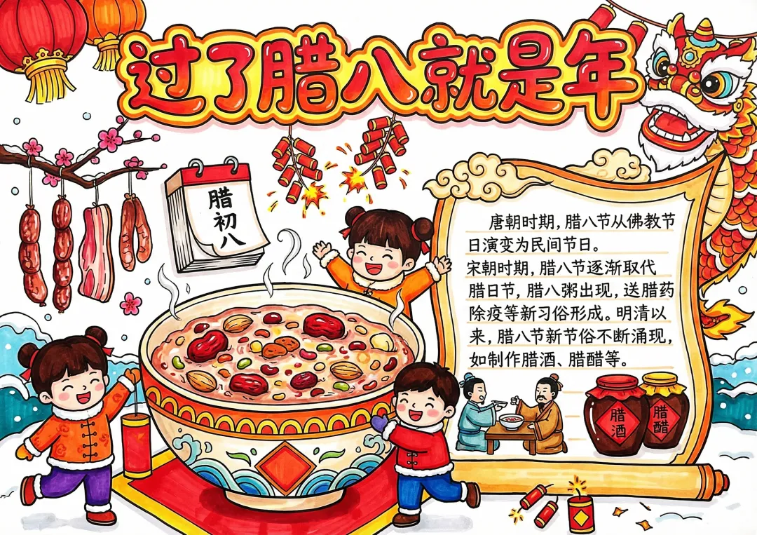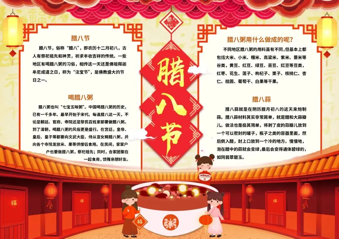 彩色卡通手绘腊八习俗手抄报小报