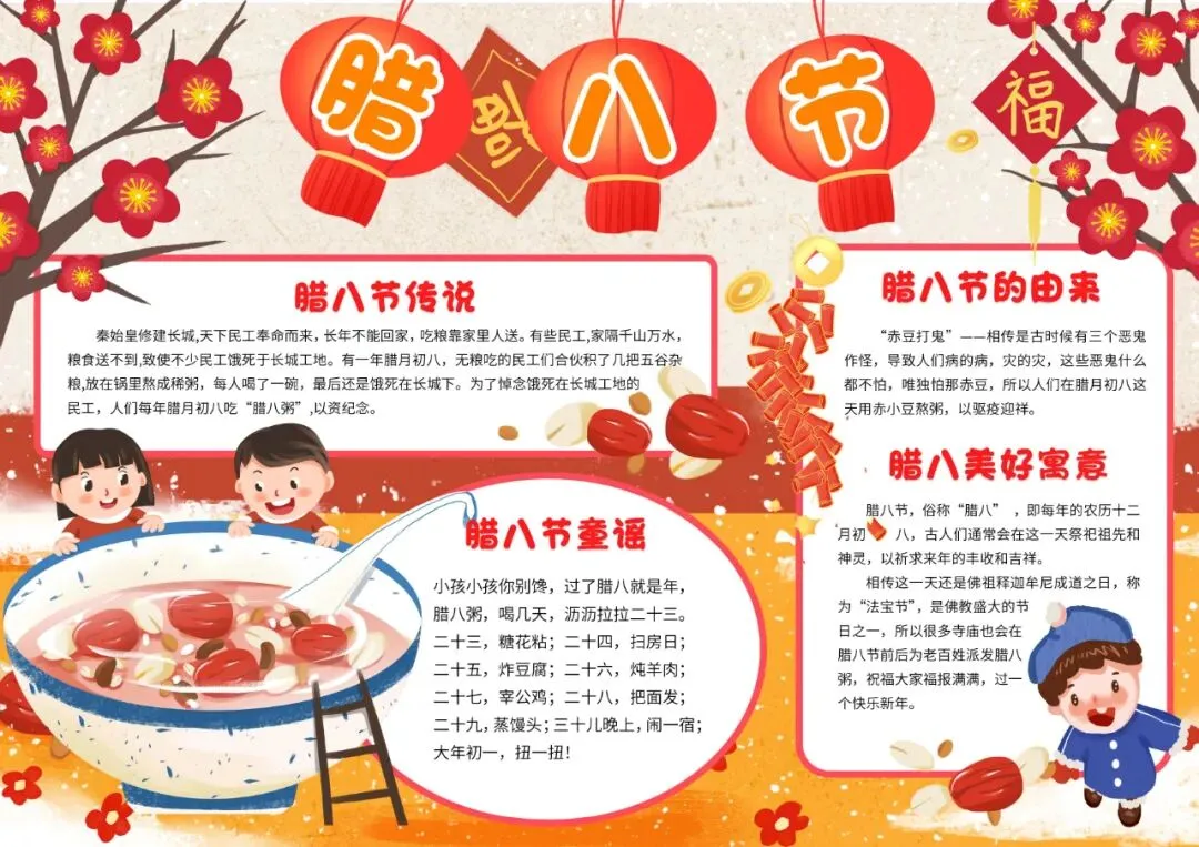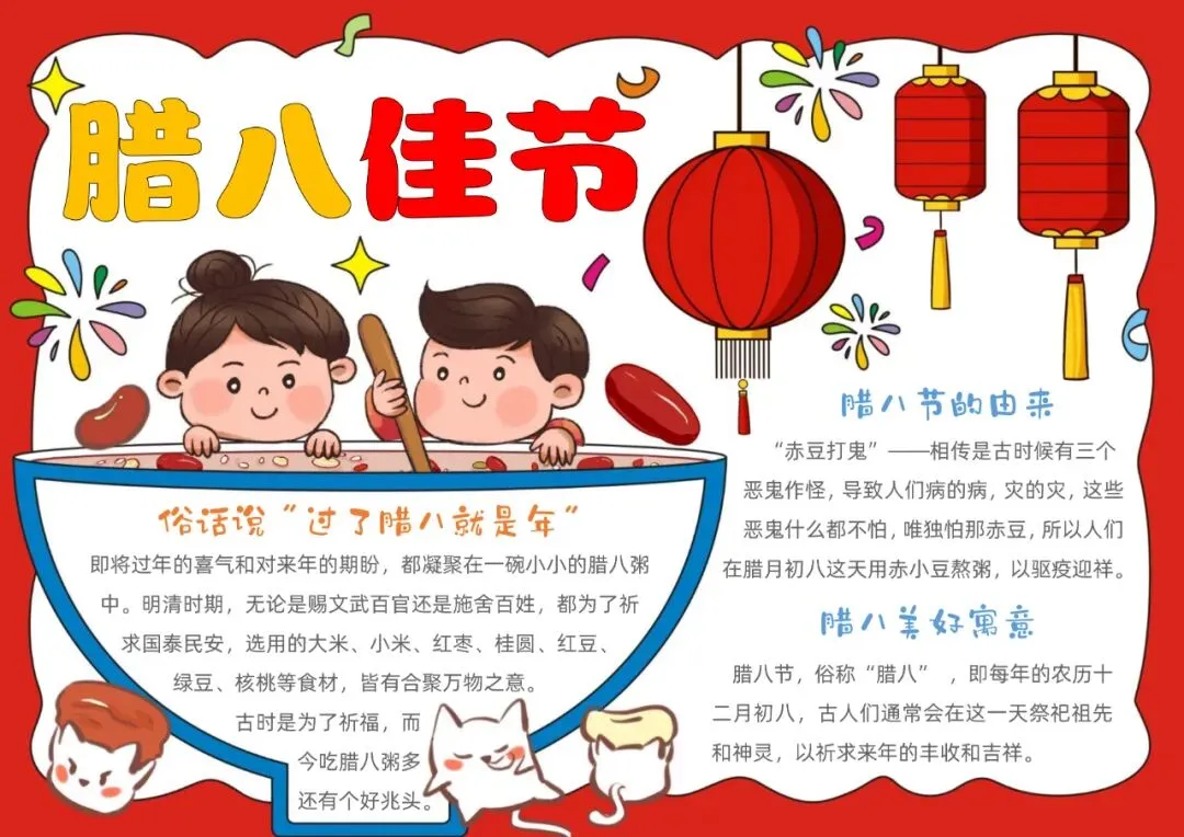 红色卡通腊八节小报手抄报小学生手抄报