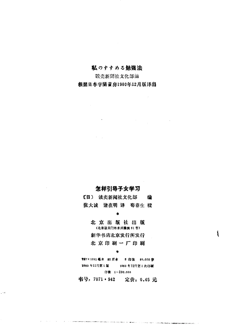 怎样引导子女学习:穿越时光的实用育儿指南,这本 1983 年译介的经典育儿书,是日本读卖新闻社文化部精选的家庭学习指导宝典,精准戳中历代父母 “辅导子女无方” 的痛点。它覆盖国语、算术、理科、社会科、英语等多学科,从习惯培养、效率提升到具体学科技巧,全是贴合中小学学习实际的实用方法。