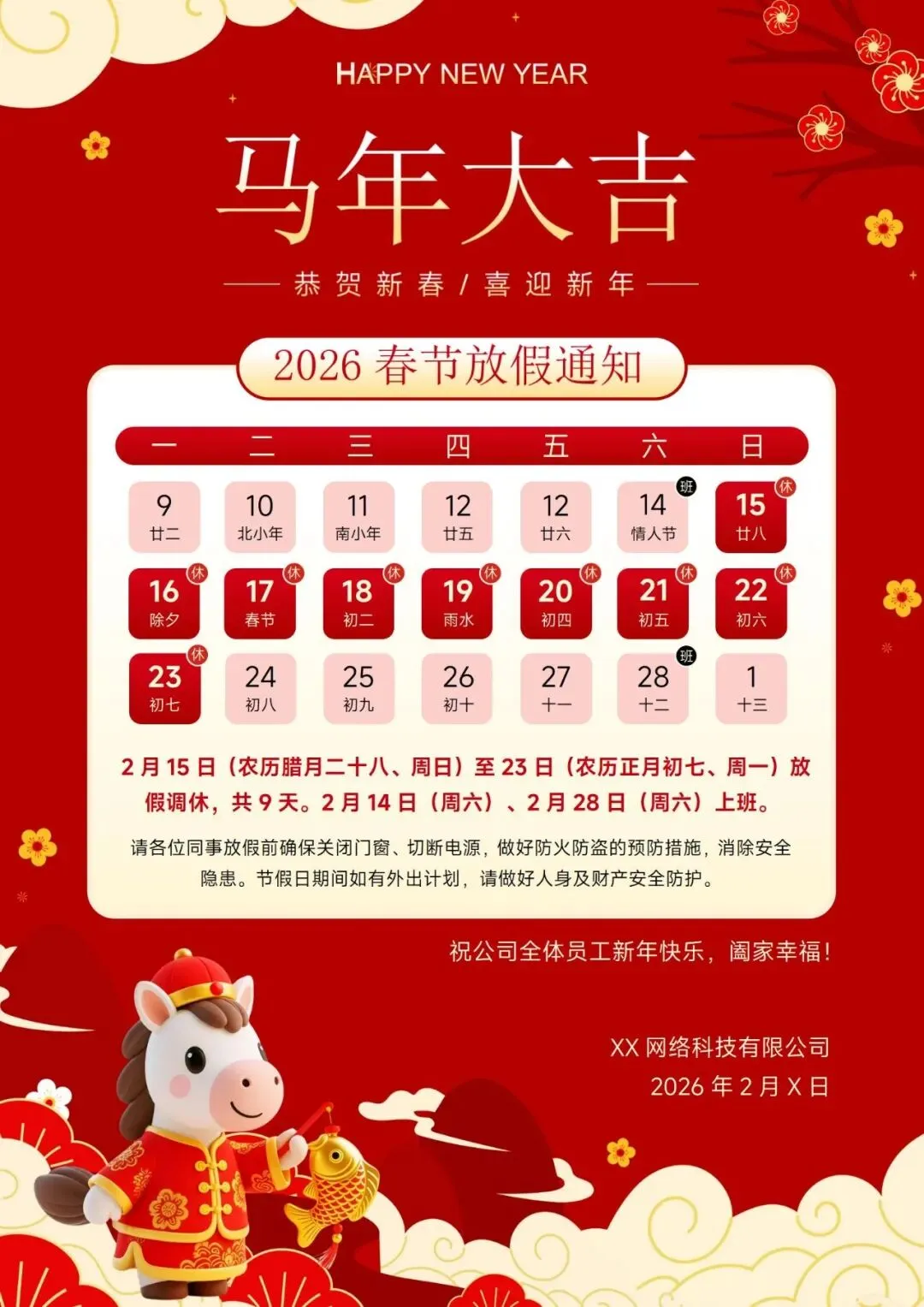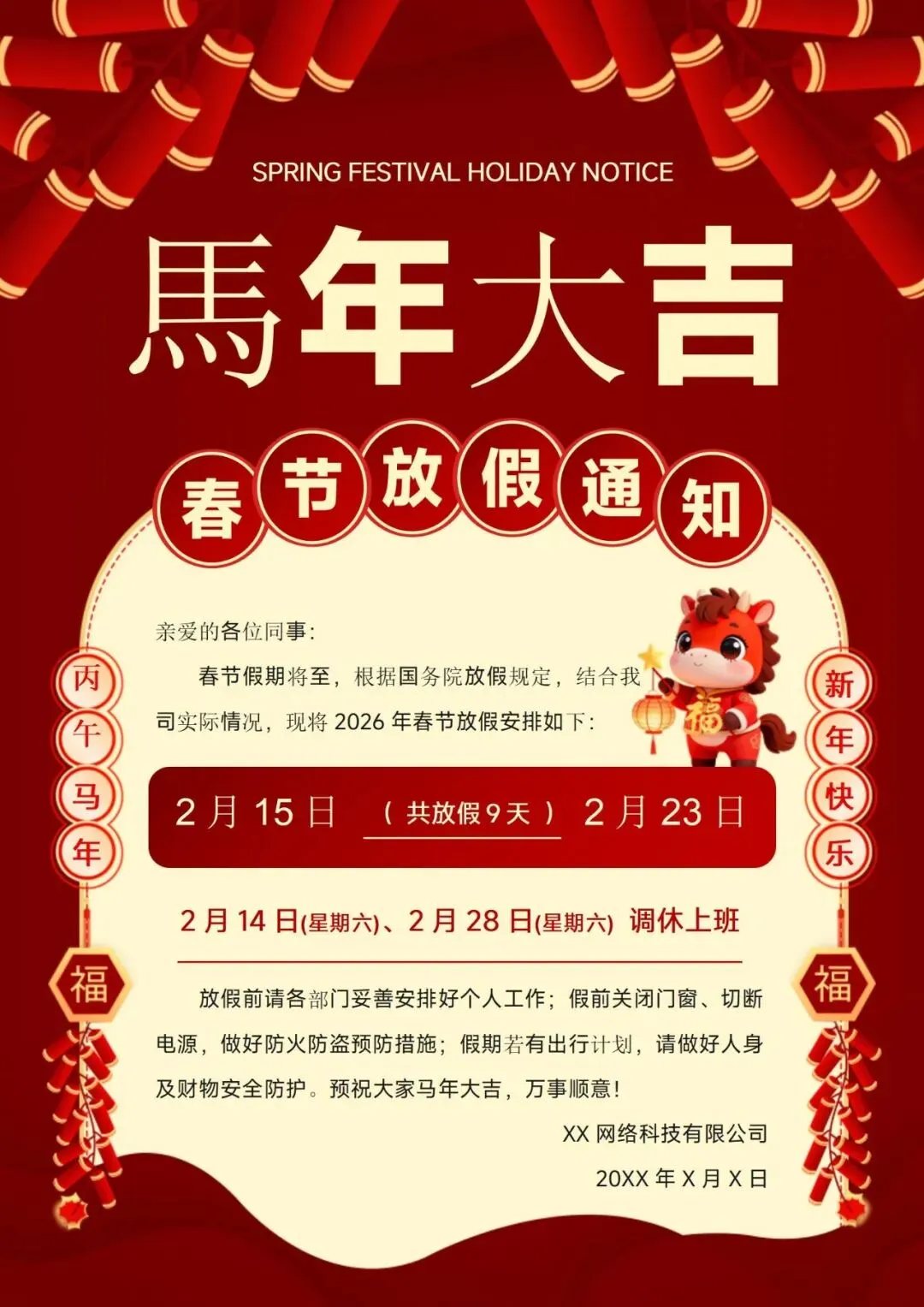 2026马年春节放假通知(word模板)免费分享今天分享的是2026春节放假通知模板👇下载地址👇https://pan.quark.cn/s/047a20a23573👆复制到浏览器打开以下是部分预览图展示因篇幅有限以上仅为部分预览图完整电子版点击左下角阅读原文免费保存