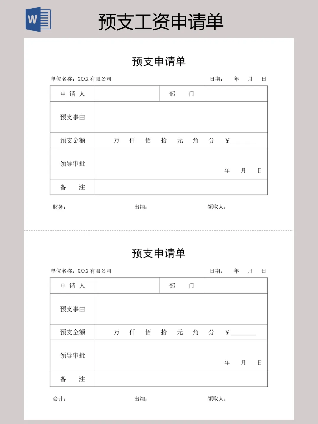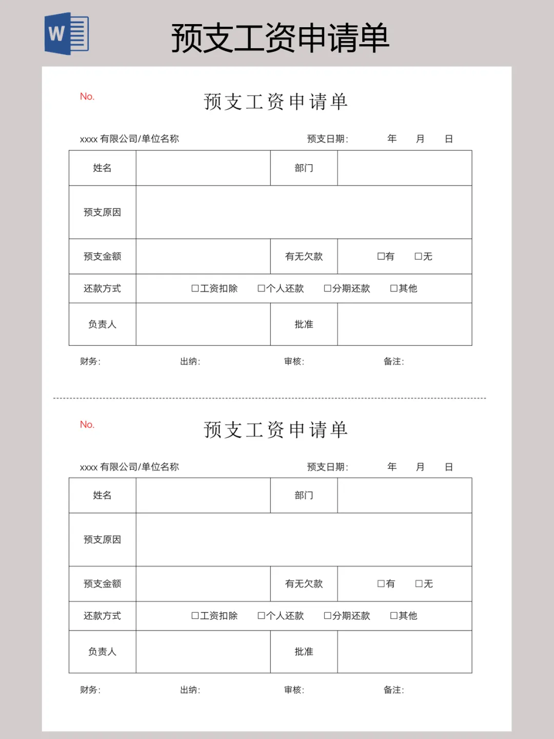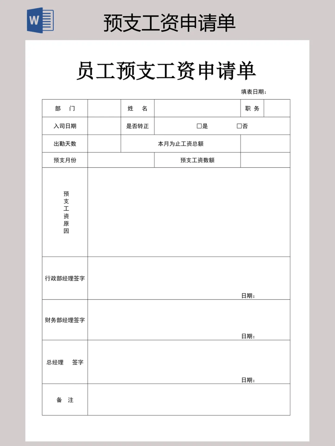 本文内容分享【预支工资申请单】