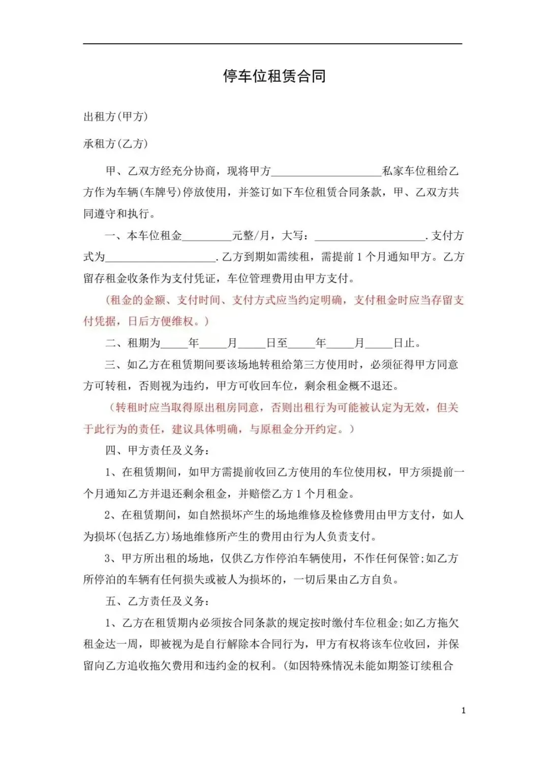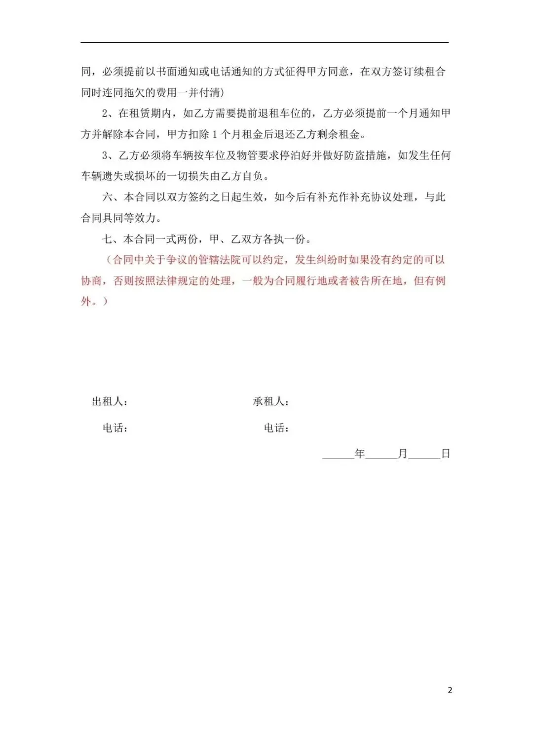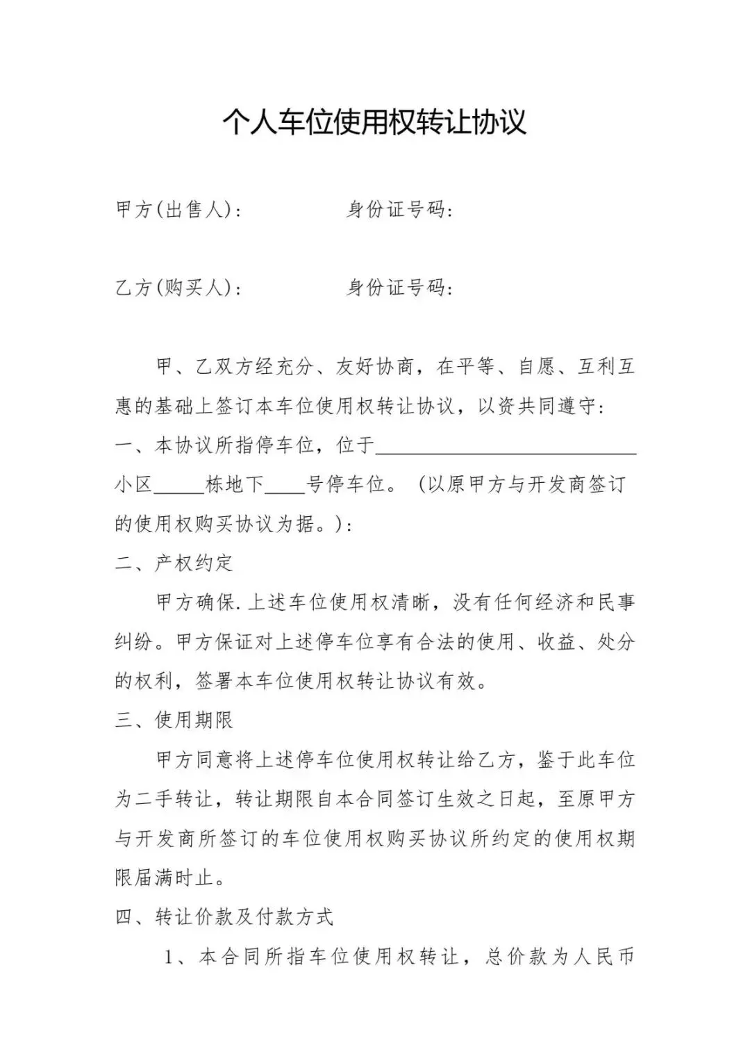 2026最新车位转让买卖租赁合同模板word电子版