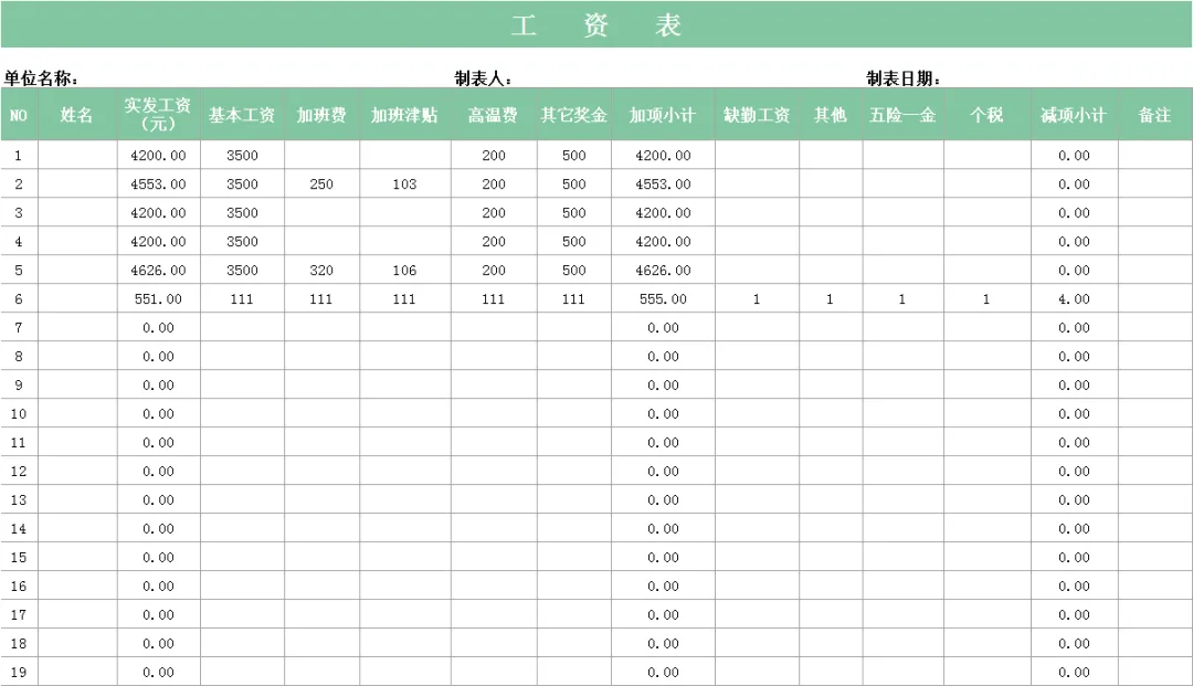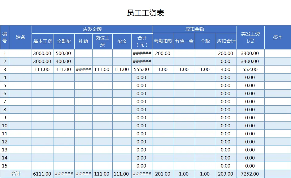 60+员工工资表工资发放明细表word模板