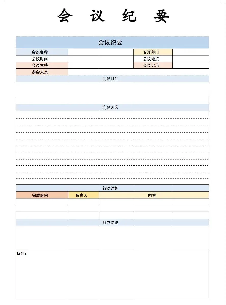 单位/公司/学校/个人用的会议纪要、会议签到表等模板
