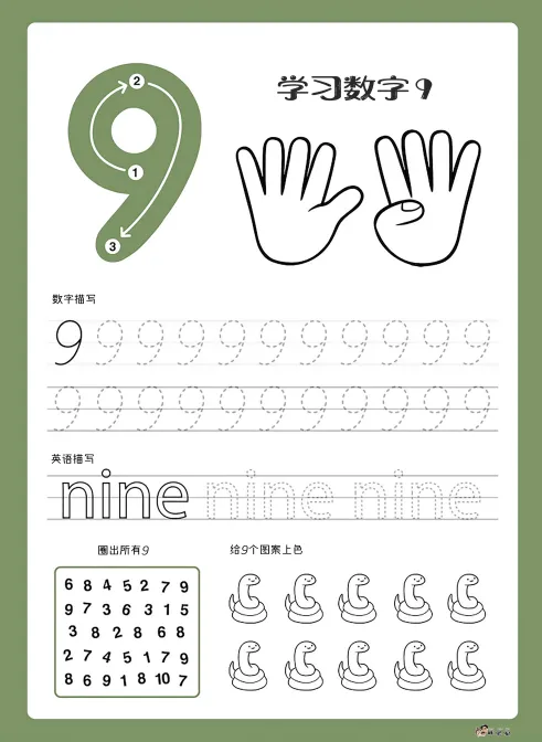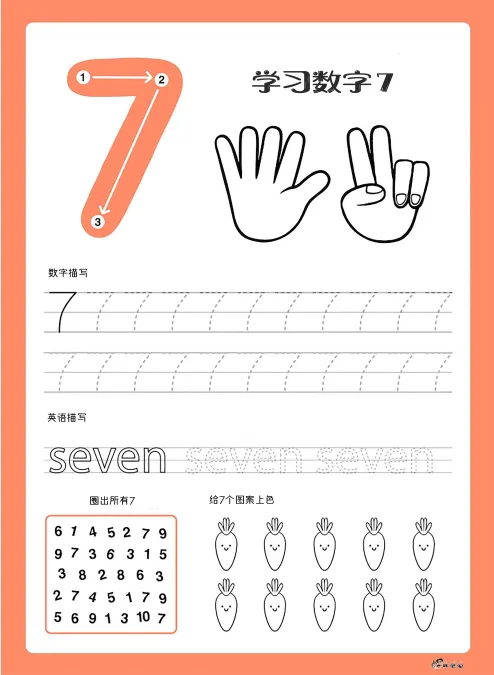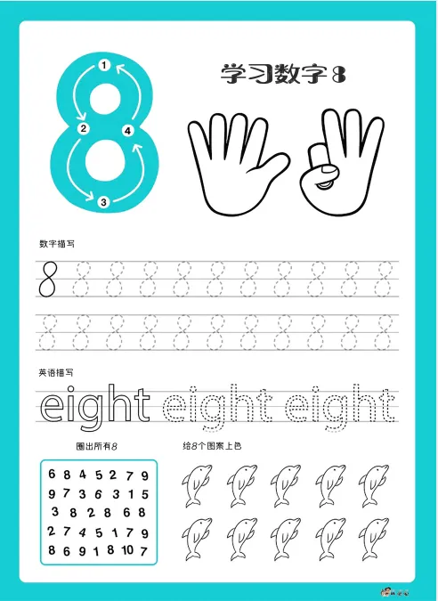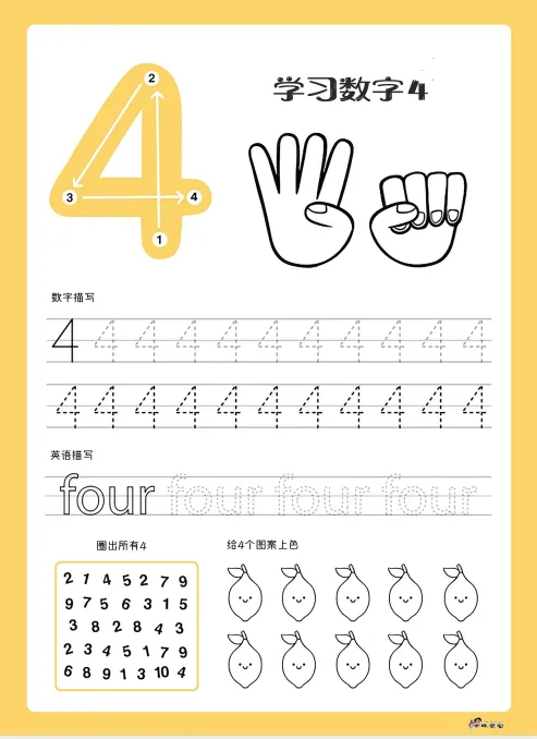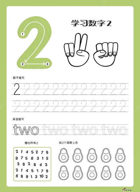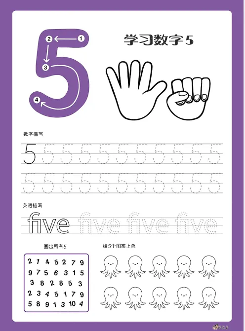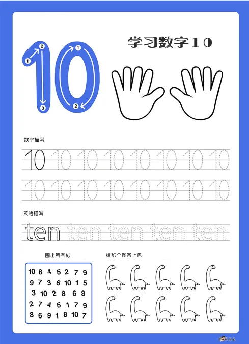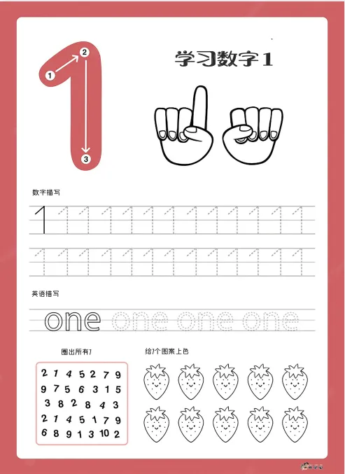 这套描红资料太实用了!1-10数字描红+对应英语单词书写,还有找数字、涂色小游戏,孩子边玩边学,控笔、认数、记单词一步到位!