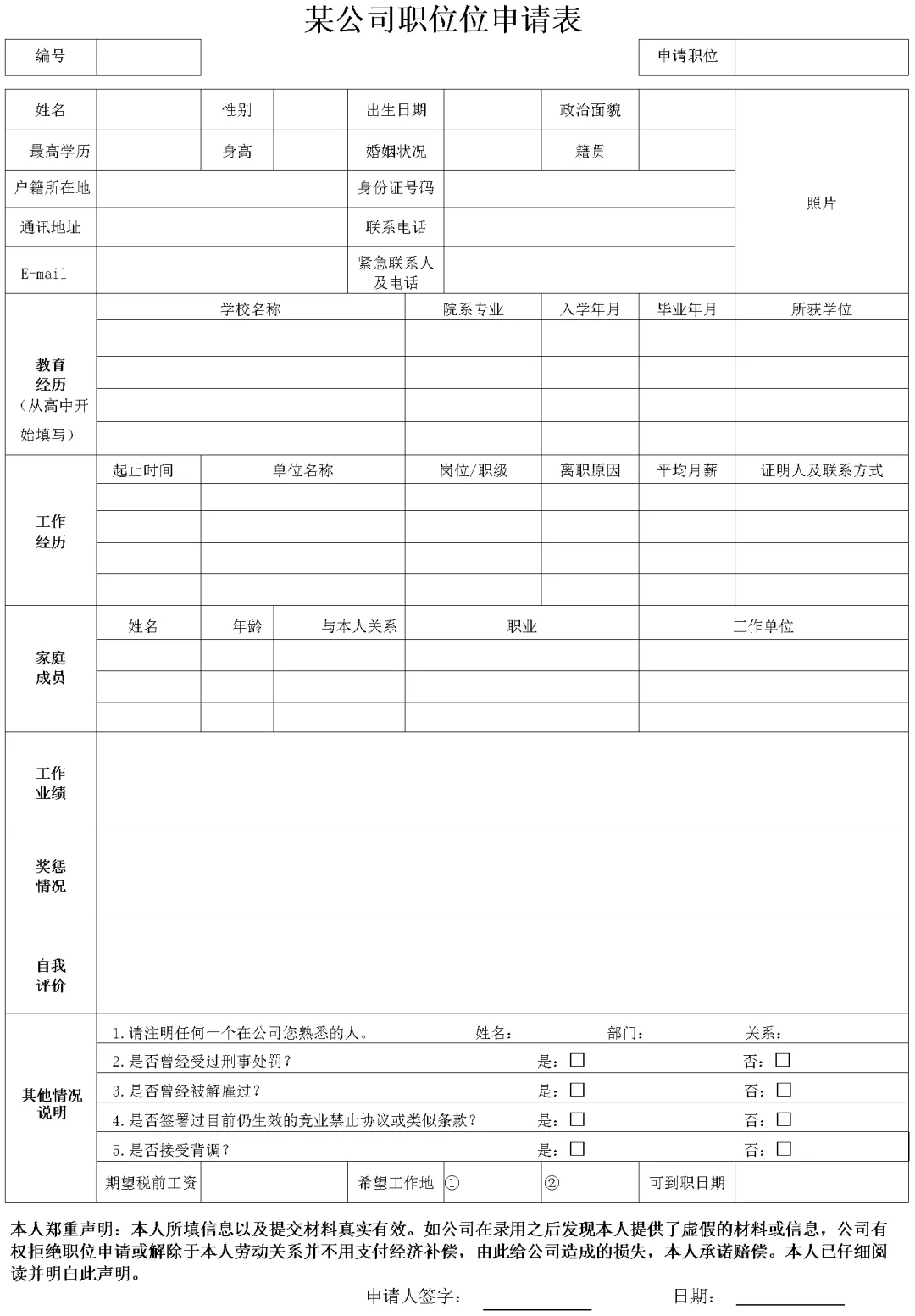 本资料为《某公司职位位申请表(Word模板)》,欢迎加入会员领取!