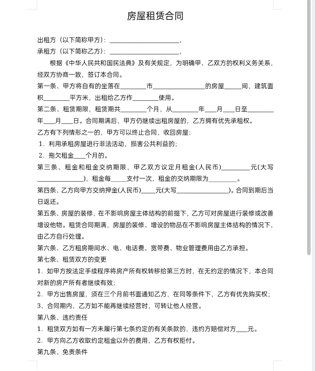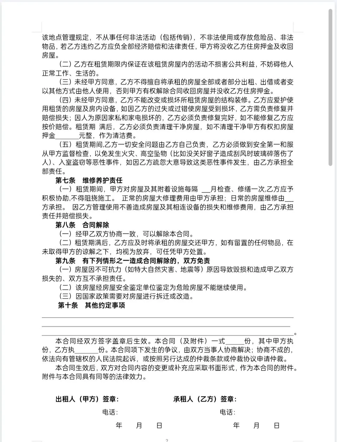 房东、租客都能用,条款合规,打开就改,签字即生效!