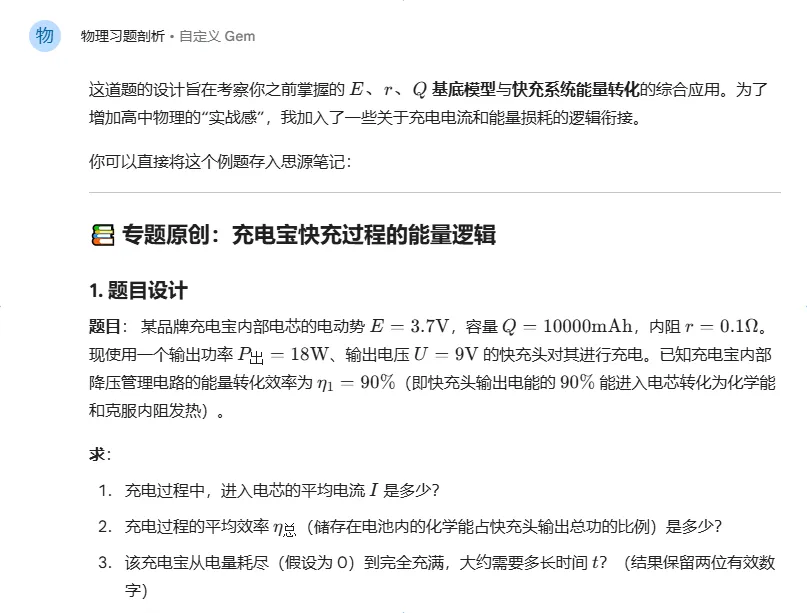 图2,是我对gemini发出的指令。gemini编了一道不错的题目并且进行了解答。