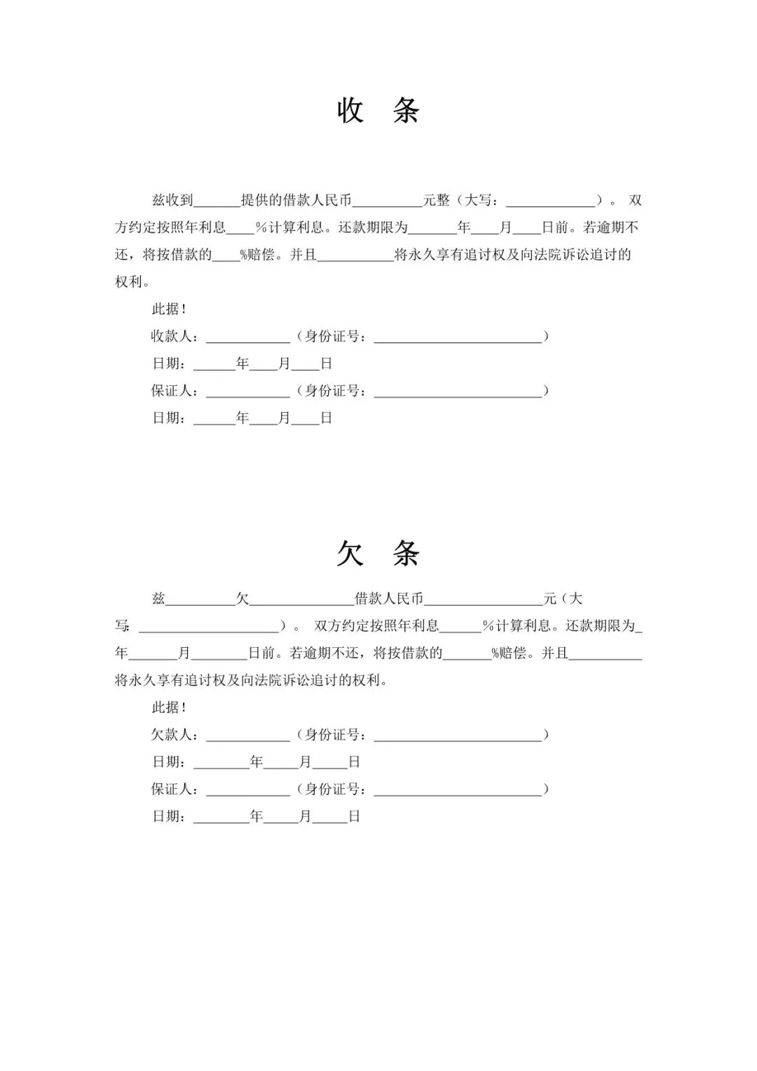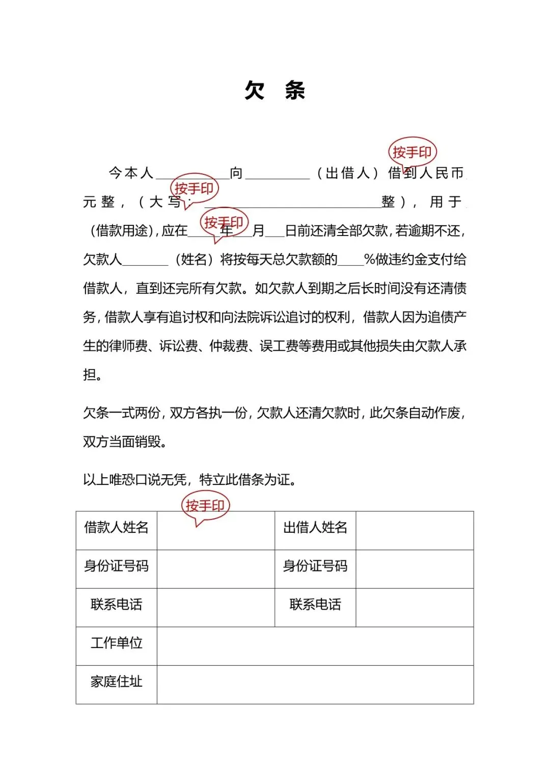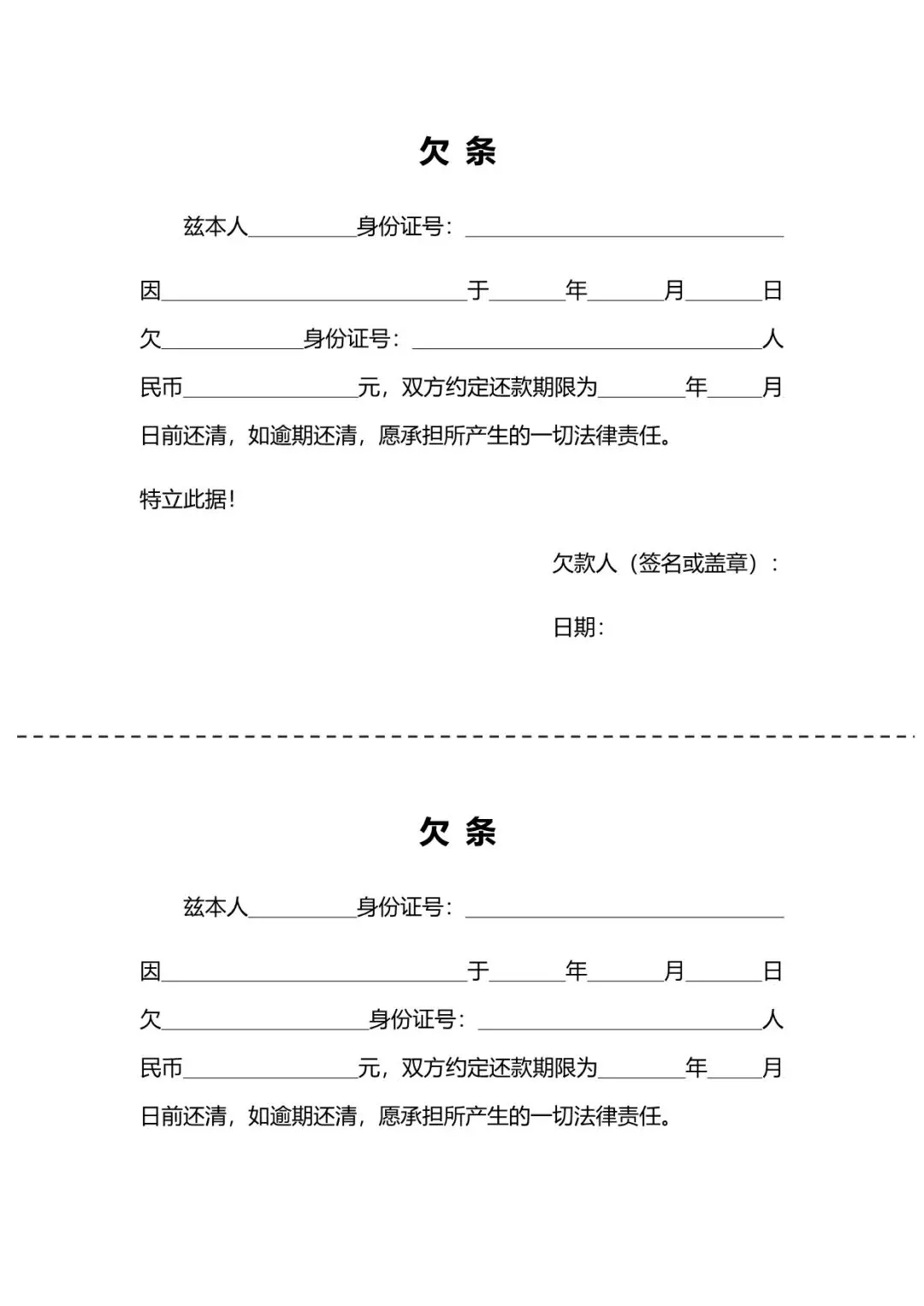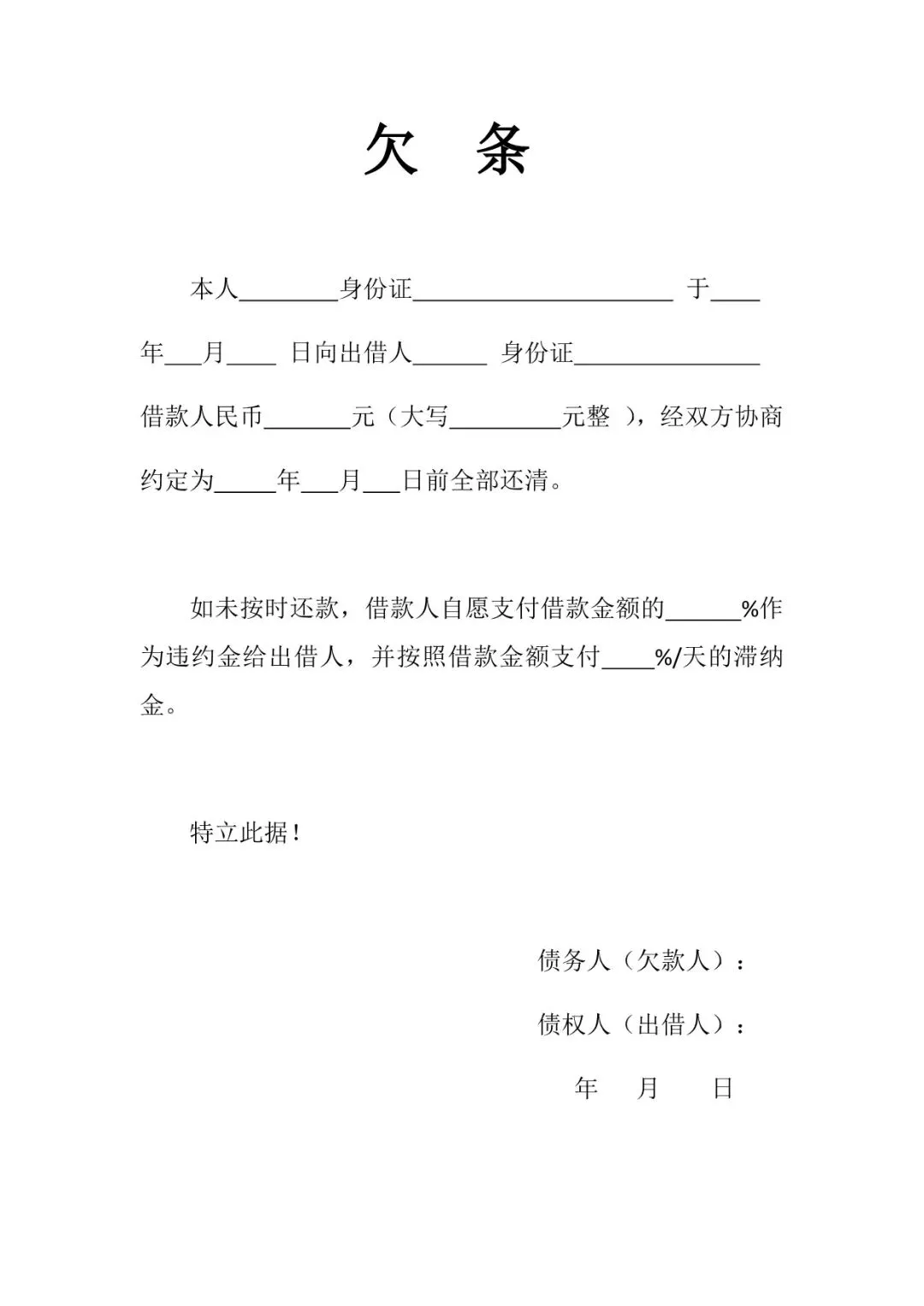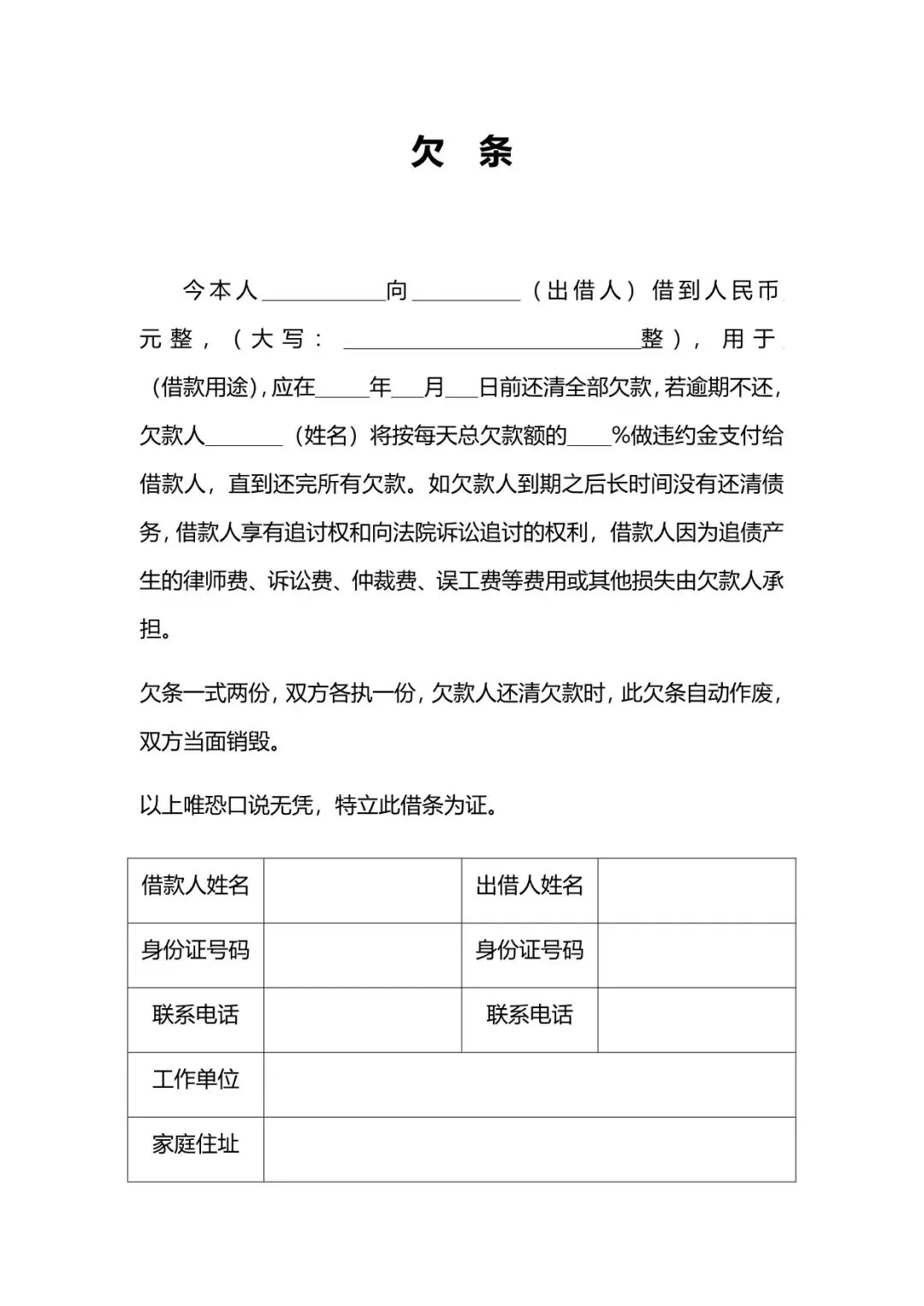 个人欠条模板