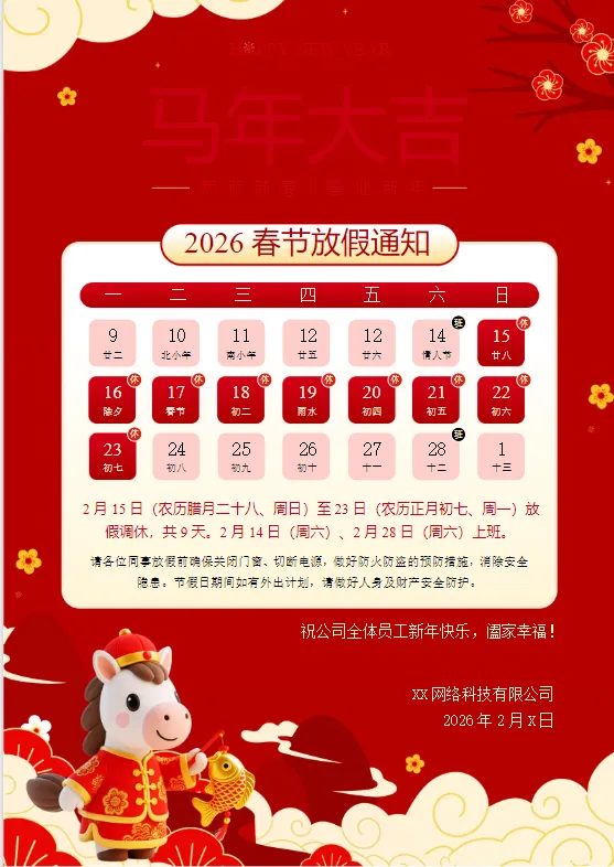 2026 马年春节放假通知模板(Word 可编辑)馋猫语录做一个吃货无忧无虑当一个痴货无牵无挂部分内容展示这份 Word 模板直接填公司信息、调放假日期就能发,自带 “春节注意事项 + 工作交接提醒” 模块 本期领取方式 1:点亮右下角“👍🏻”+”“+留言“马年”2:馋猫后台回复:马年
