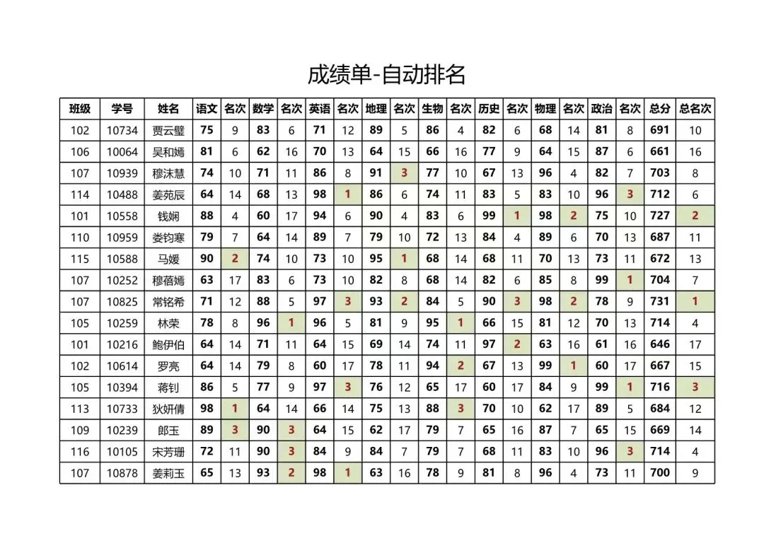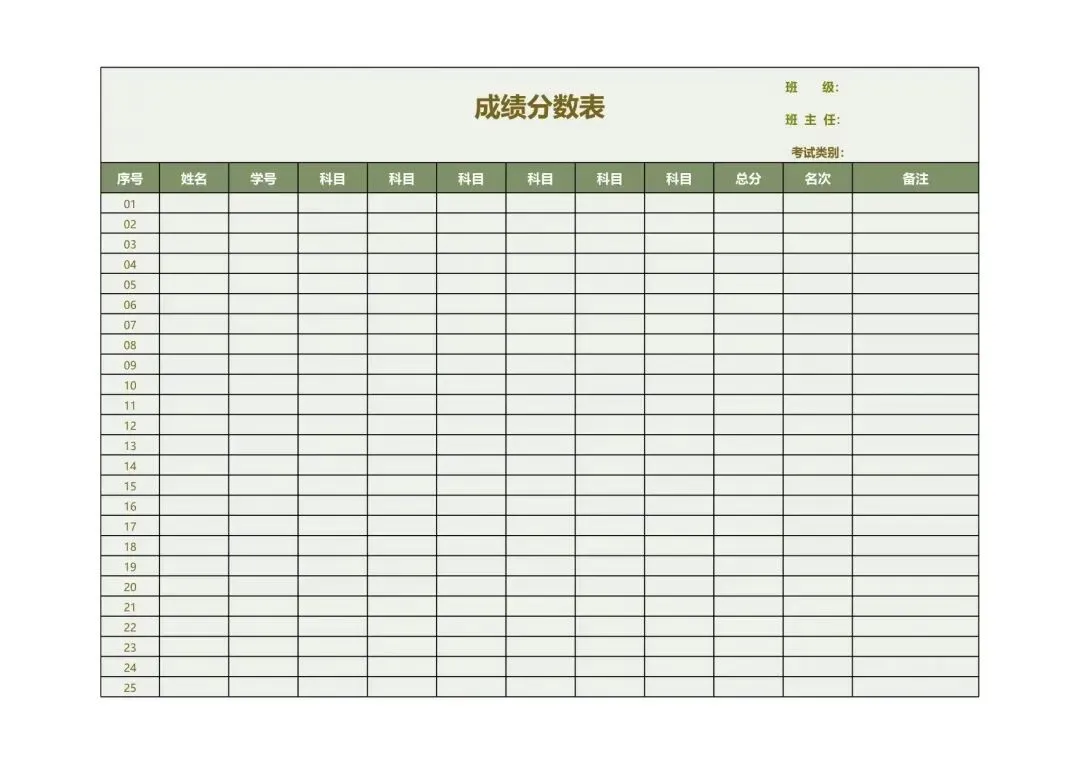 100+中小学生成绩表模板