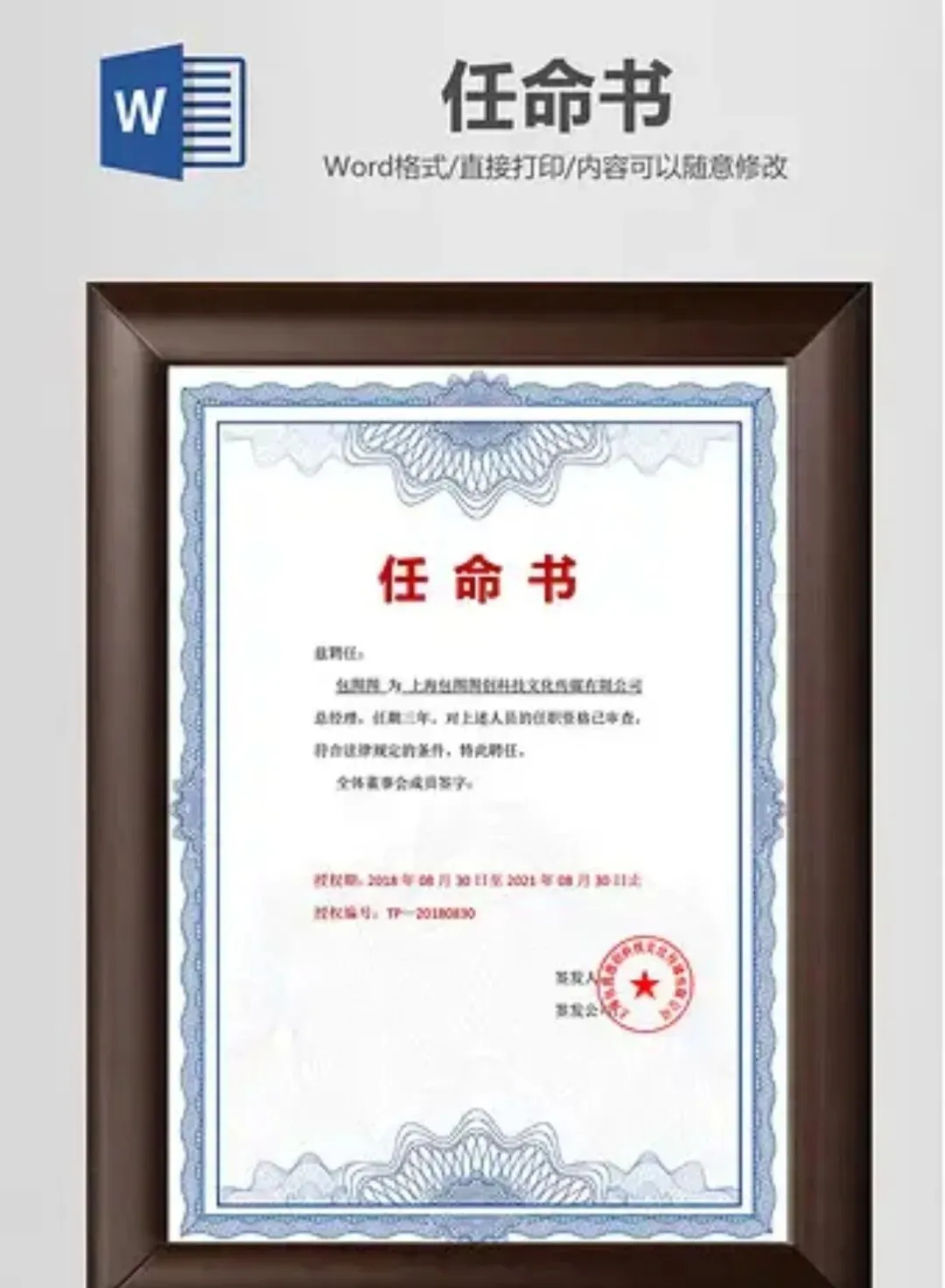 本文内容分享【任命书聘书word模板免费下载可编辑打印】