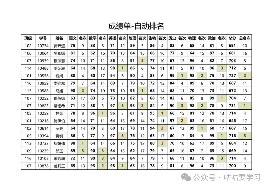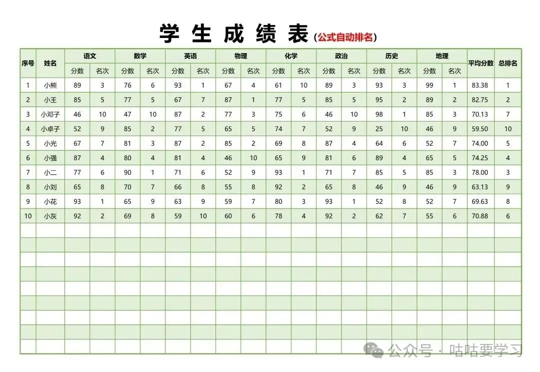 100+中小学生成绩表模板完整word版,可免费下载打印(有公式自动计算排名)