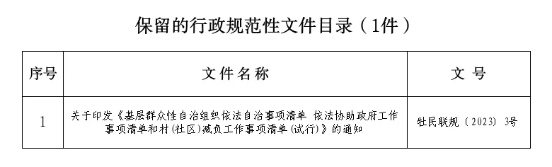 按照《关于开展地方性法规、政府规章和行政规范性文件清理工作的通知》要求,我部对2025年8月1日前制定公布的现行有效的行政规范性文件进行了清理。经清理,保留行政规范性文件1件,修改行政规范性文件0件,废止行政规范性文件0件,宣布失效行政规范性文件0件。