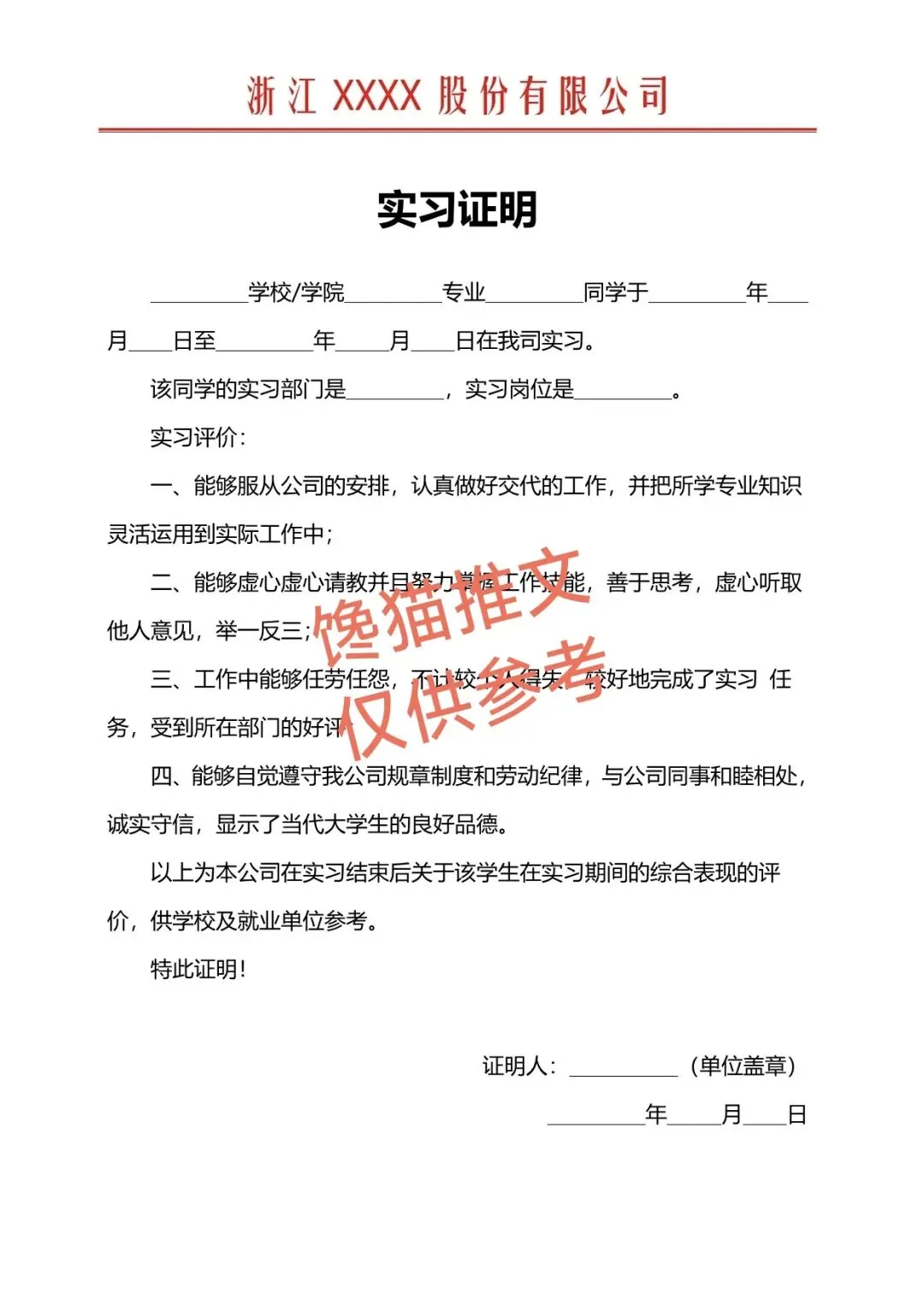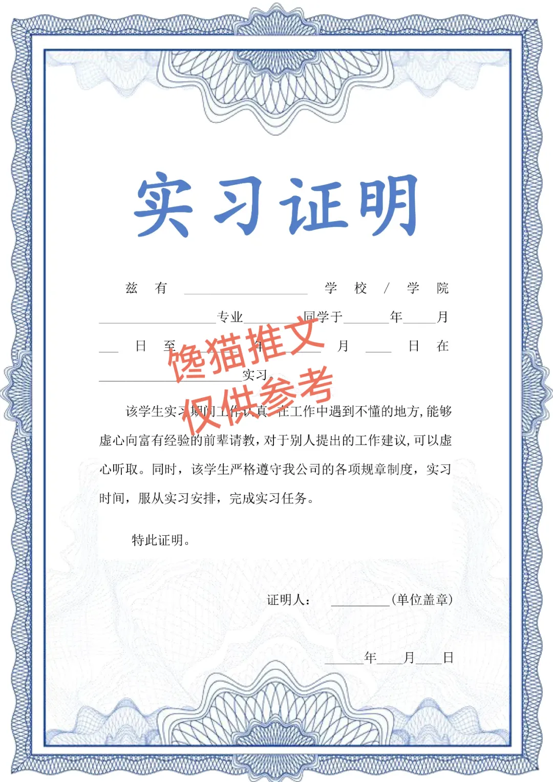 实习证明(证书)