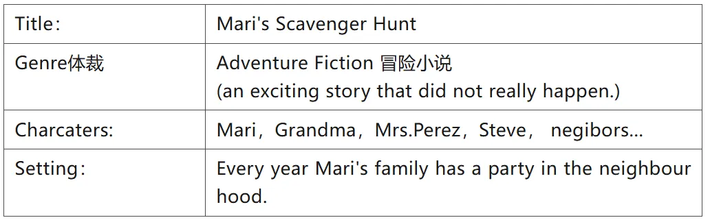 I am going to introduce the story called Mari's scavenger hunt.This is an adventure fiction story.