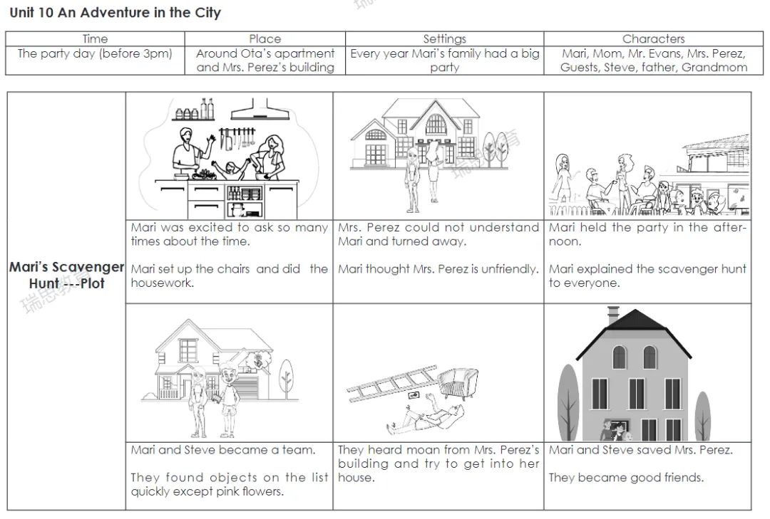 Chapter Three is about after the party. It was late at night at home. Mary and grandma washed the dishes together. This scavenger hunt was a great success. Mari and Steve saved Mrs.Perez and they became good friends.Mari would ask Mrs Perez to come to the party next year.