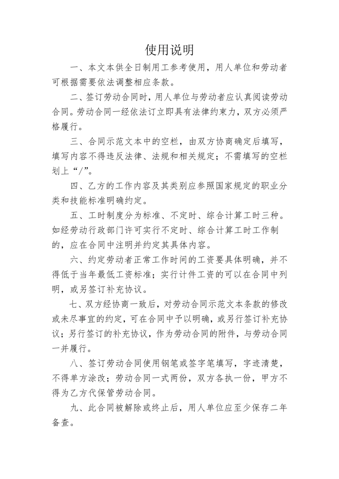 一、全日制用工劳动合同示范文本