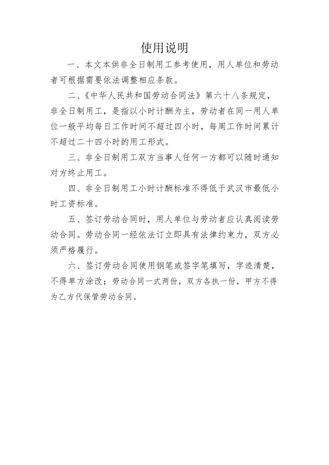 二、非全日制用工劳动合同示范文本