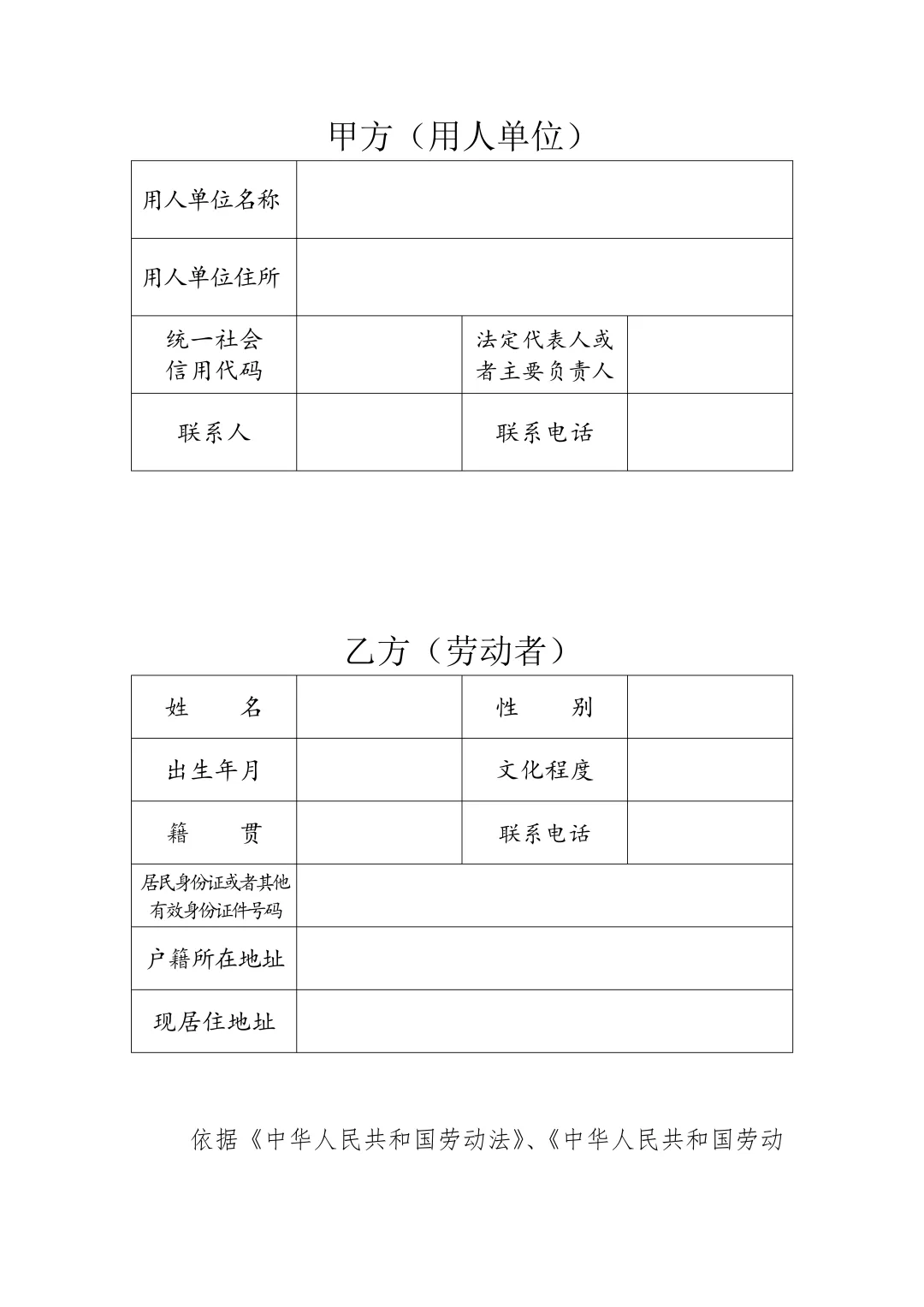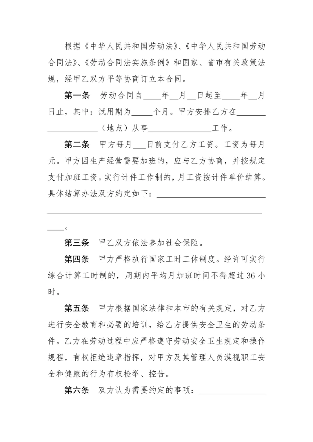 劳动合同范本