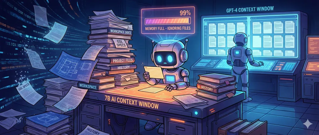 系统提示词:2000 tokens历史对话:8000 tokens(最近几轮)你的请求:1000 tokens剩余容量:32000 - 2000 - 8000 - 1000 = 21000 tokens你的 GDL 规范文档(7 个文件 × 3000 tokens = 21000 tokens)刚好!但如果有一个文档多一点,就会被截断。如果被截断的是最重要的那个文档,AI 就完全不知道你定义的命名规范。