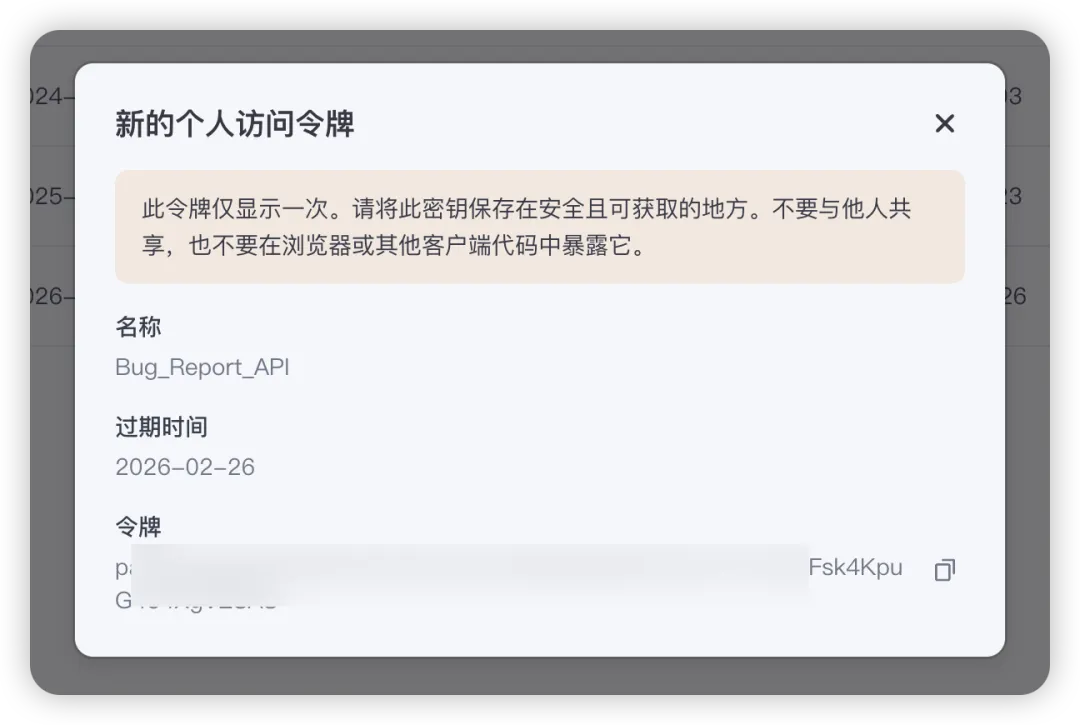 - 然后复制**令牌,**后面飞书表格配置需要