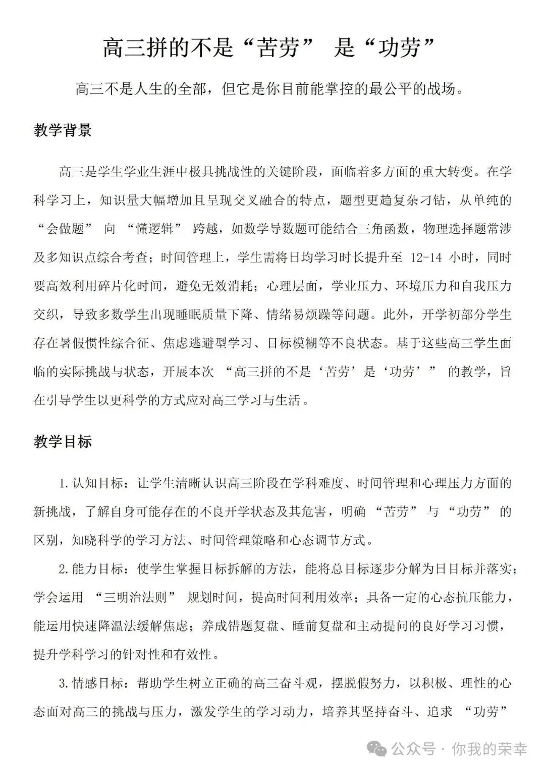 【高三】【学习指导】开学第一课励志班会《高三登峰:凭功劳笑傲群雄》(文档+PPT)【高三】【学习指导】开学第一课励志班会《高三登峰:凭功劳笑傲群雄》(word文档+PPT)【word+PPT完整版获取方式在文末】完整版获取方式👇点击下方卡片 你我的荣幸 欢迎关注! 公众号 关注后发送消息“完整版”