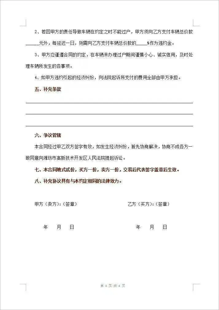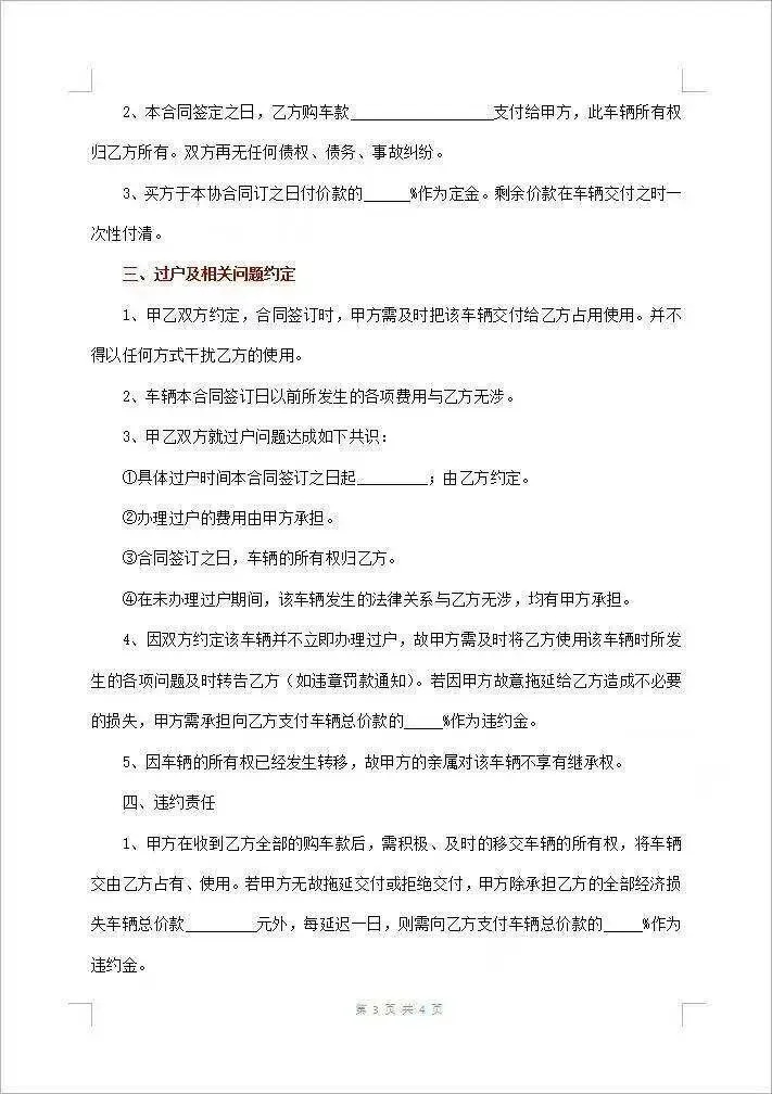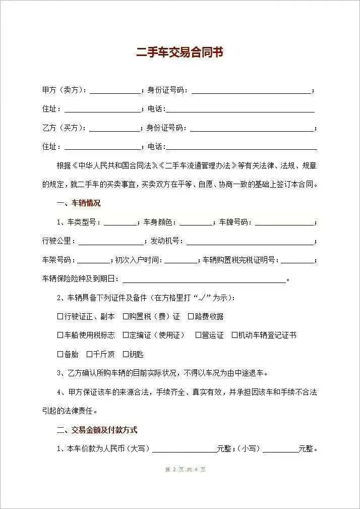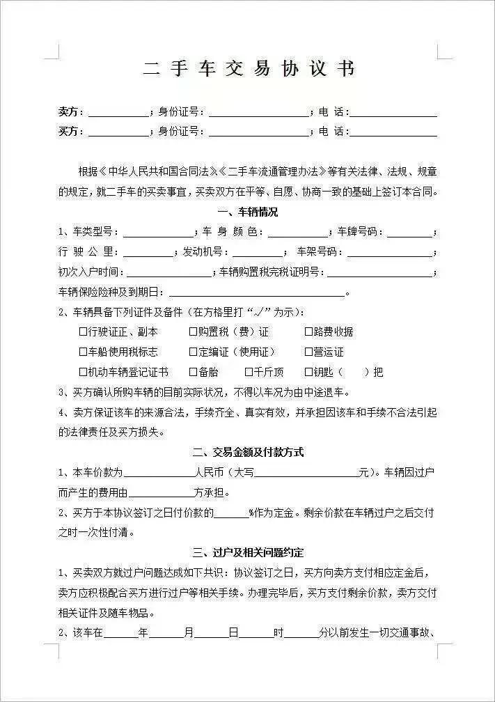 本文分享的是【二手车买卖合同协议模板(word电子板)