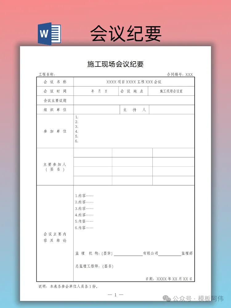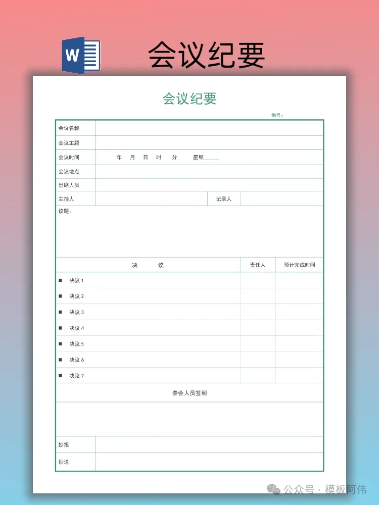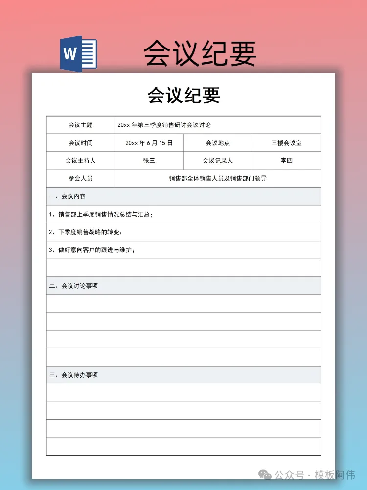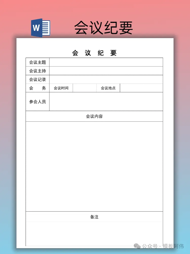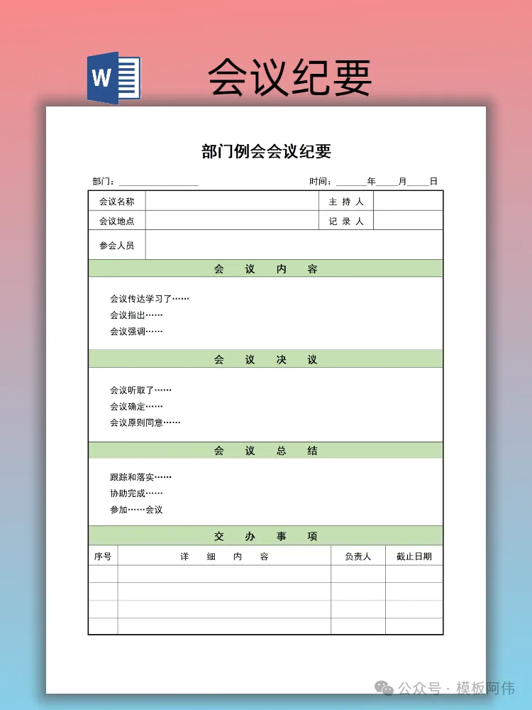本文内容分享【会议纪要模板】