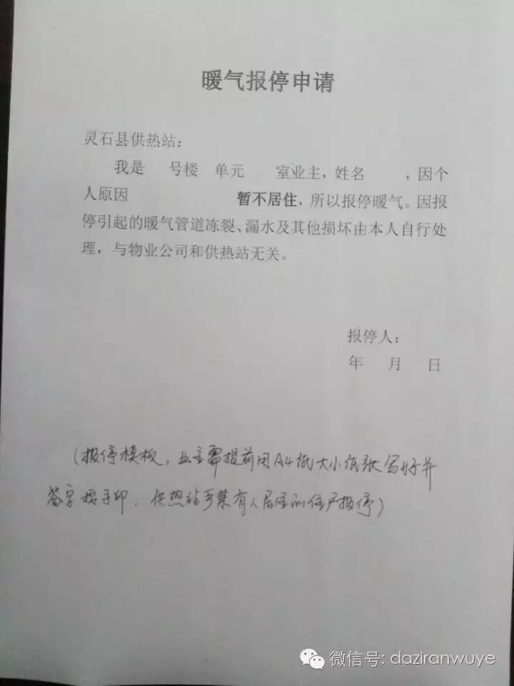 各位启明城业主,有需要报停暖气的请您参照以下内容。