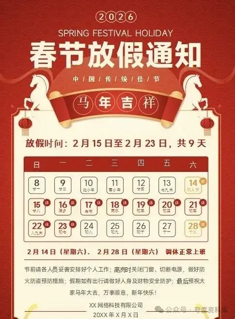 马年春节放假通知,word模板,可下载可编辑2026马年春节放假通知模板,word版本,可下载可编辑,部分效果预览如下,完整版下载方式见文末。详细岗位信息下载地址:(手机端请长按下方二维码识别,电脑端请用手机微信扫描识别)