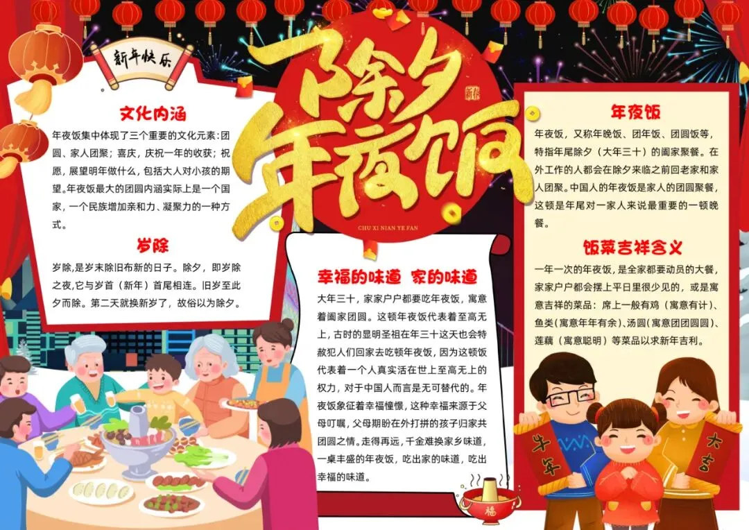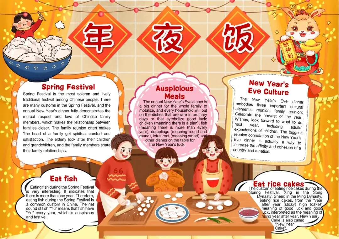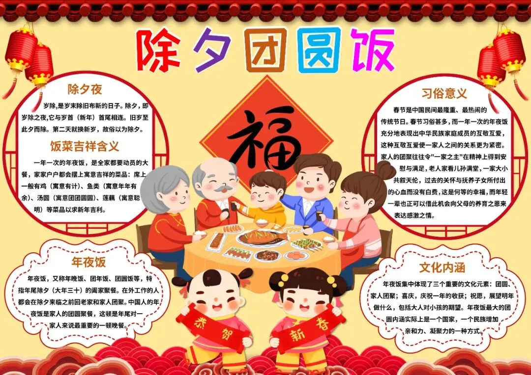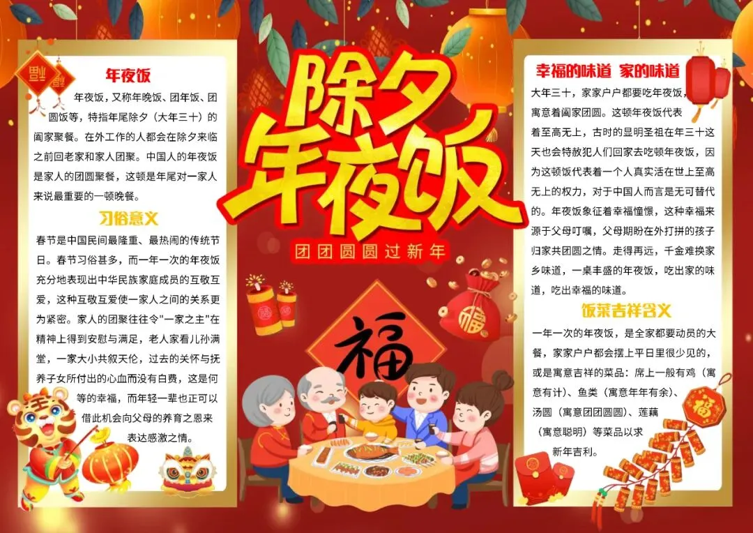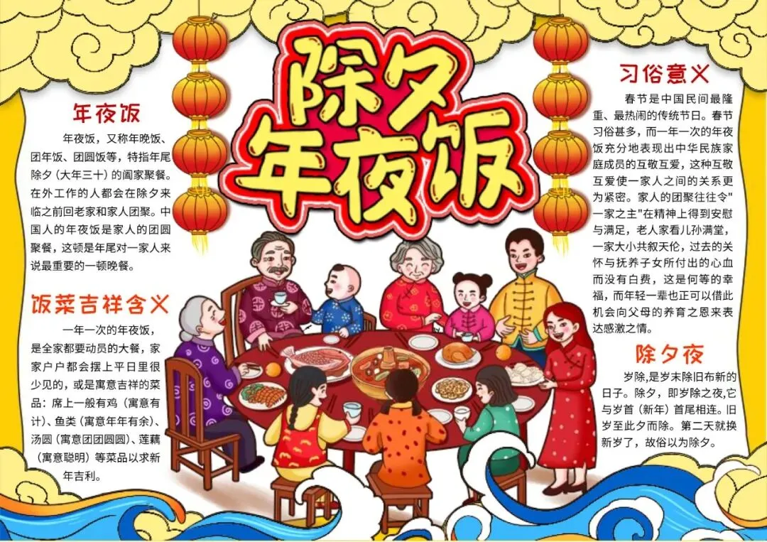 中国风年夜饭英文小报手抄报除夕小报手抄报年夜饭英语