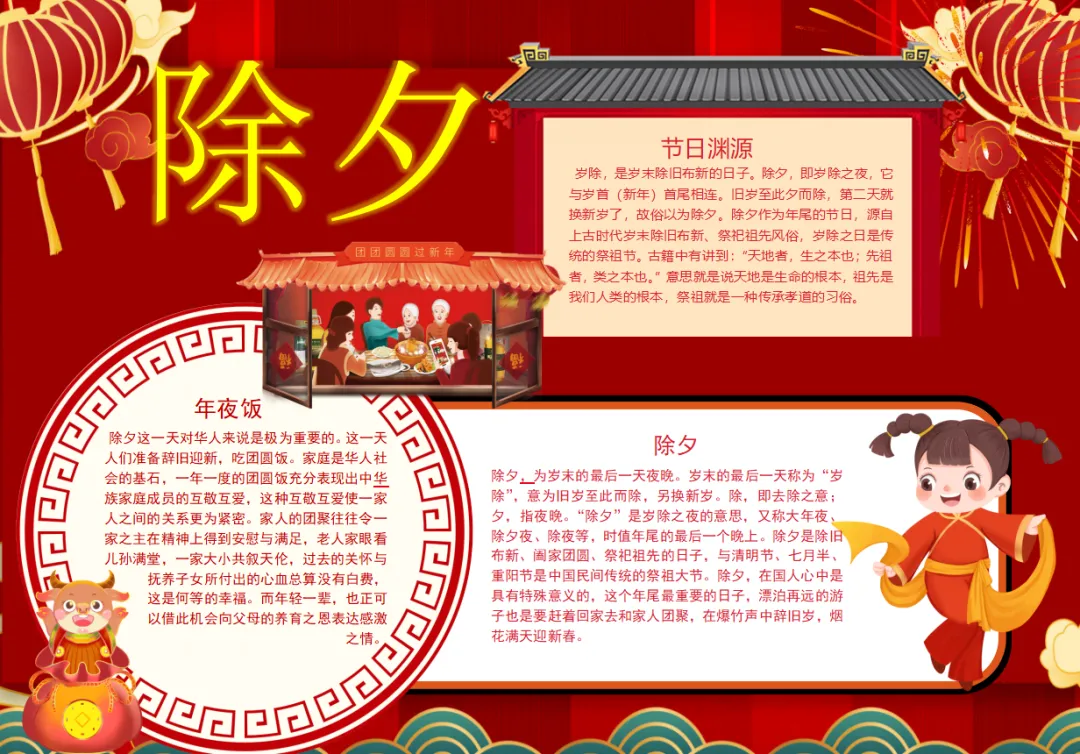 红色除夕年夜饭节日牛年2026除旧迎新小报